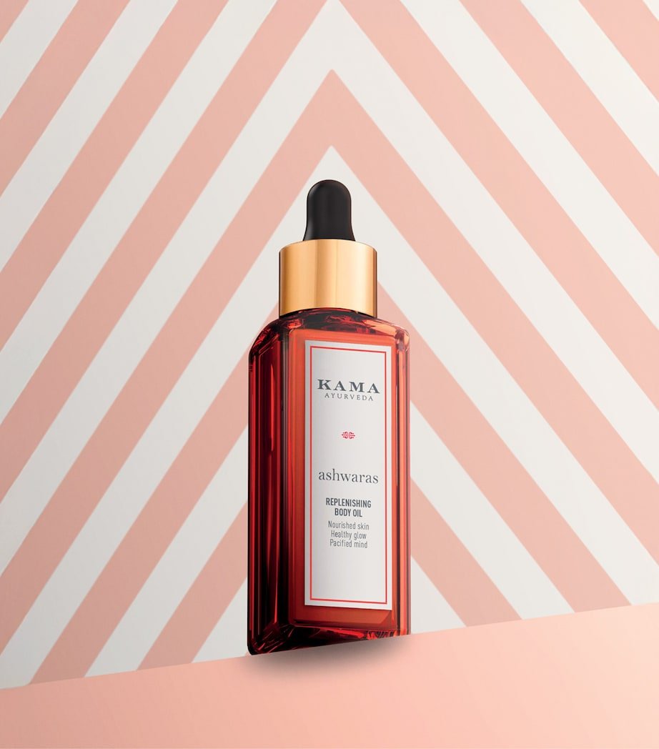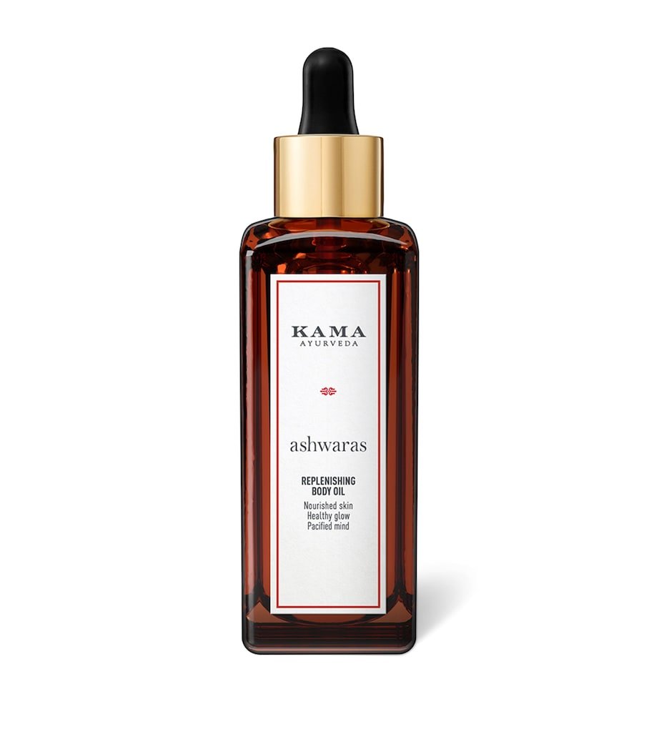Rejuvenate your skin and senses with this nourishing body oil from KAMA AYURVEDA, infused with Ashwagandha and a trio of Ayurvedic botanical oils. Known for its adaptogenic properties, Ashwagandha helps calm the mind and support skin vitality, while the blend of traditional Ayurvedic oils deeply hydrates and restores balance.