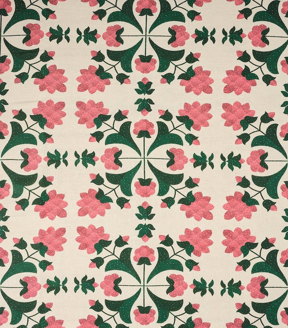 The Garda tablecloth’s pattern is inspired by American appliqué quilting.