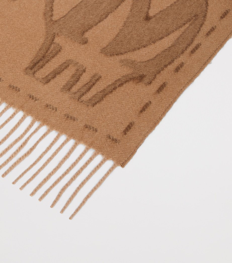 Woven from pure cashmere, this Max Mara stole scarf embodies the brand’s signature understated luxury. A tonal jacquard monogram reflects its commitment to impeccable craftsmanship, while delicate embroidered animal motifs lend a characterful, artisanal flair. Versatile and refined, it makes the perfect accessory for elevating your daytime attire and evening ensembles.