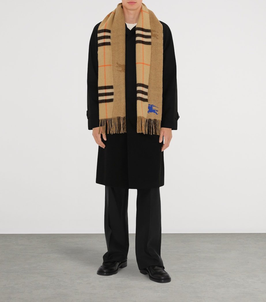 Superior Scottish craftsmanship defines this double-faced cashmere scarf from Burberry, woven at a historic mill and finished with soft fringing at both ends. The fabric is treated using teasels – dried flowers that raise the cloth – to achieve its signature ultra-soft texture, guaranteeing a refined feel against the skin.