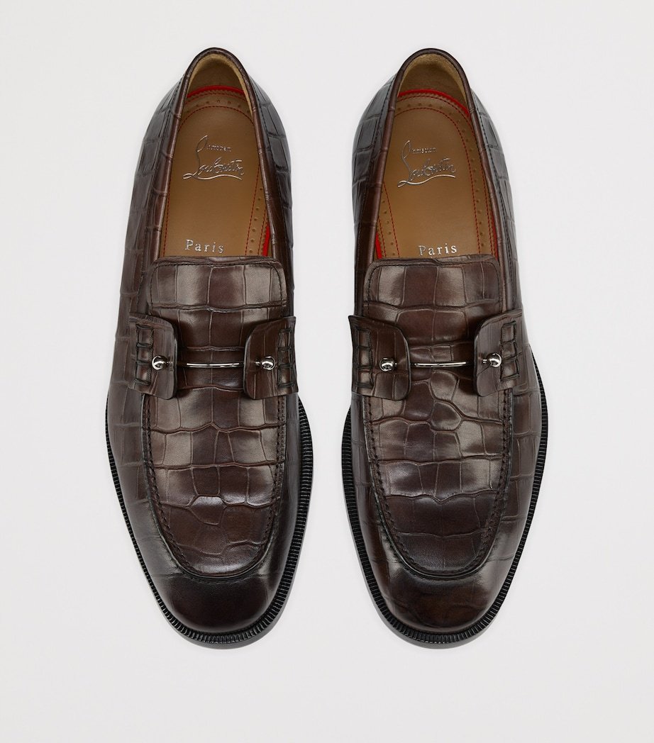 After remarking on an employee’s scarlet nail polish, Christian Louboutin had the idea for his most fabulous finish: the lacquered red soles that are now an iconic symbol in footwear. The Chambelimoc loafers are blessed with this detail, complementing the style’s leather upper and metal collar pin.