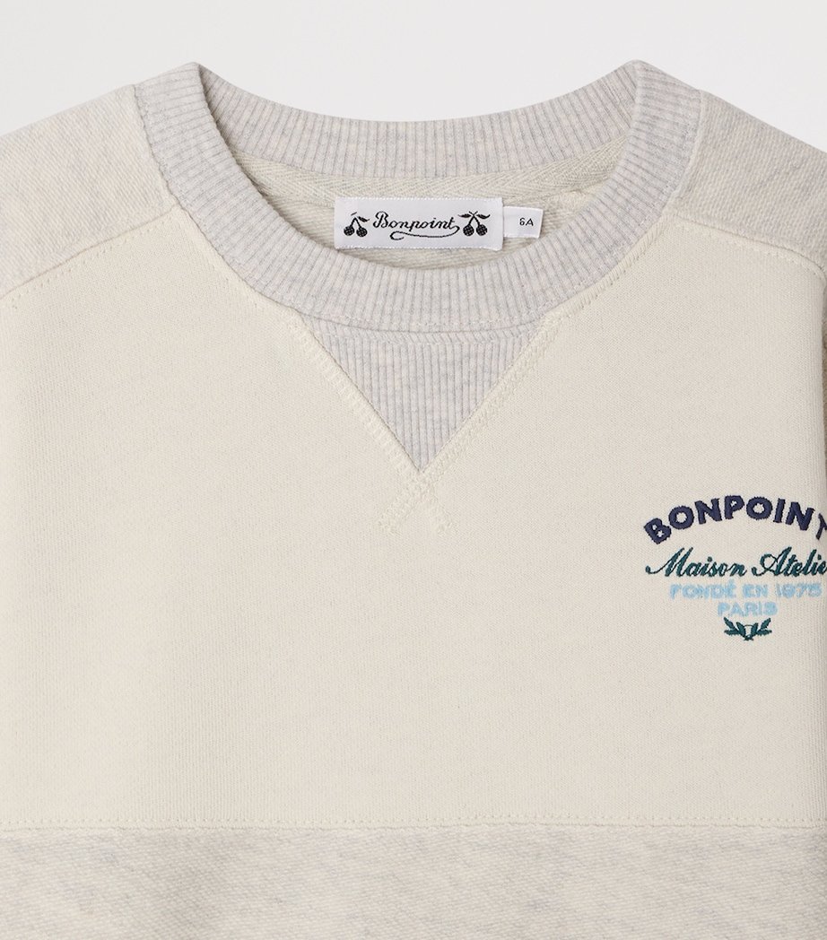 Bonpoint’s intuitive design style is exemplified in this sweatshirt. Soft stretch is achieved through a cotton-rich weave complemented with cosy wool and cashmere, while a contrasting panelled design lends a tactile and contemporary finish to elevate the classic jersey crew neckline.