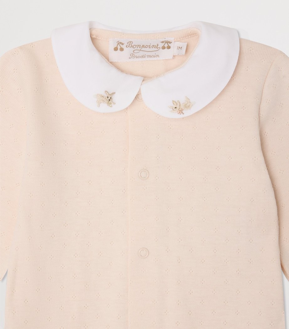 A thoughtful layer for everyday moments, this cotton all-in-one is made to move gently with little ones as they sleep, stretch and play. Its naturally soft handle keeps things comfortable without fuss, while the simple, enveloping shape makes changes quick and easy. Plus, look closely and you’ll spot whimsical rabbits perched along the collar.