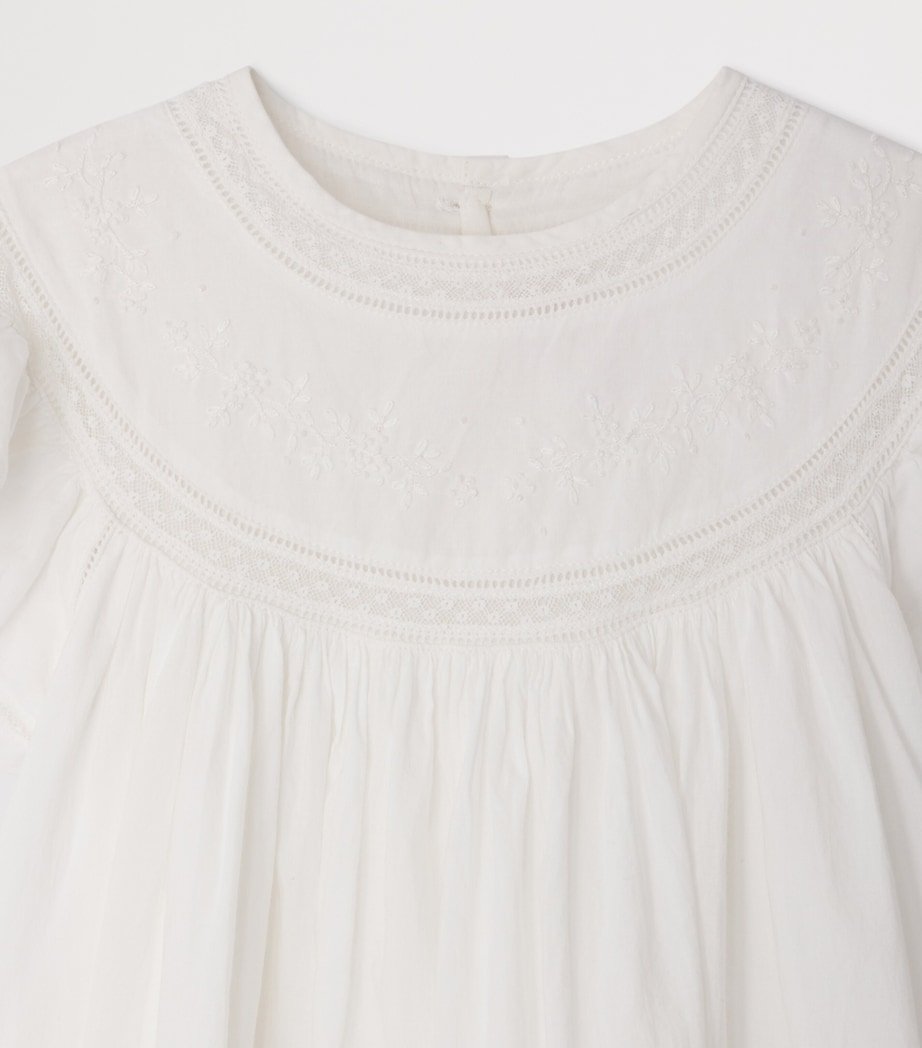 The young fashion enthusiast will be familiar with Bonpoint, a French label that infuses the spirit of Paris into every design. Crafted from sumptuous cotton, this minimalistic dress is enhanced with ruffled sleeves that lend it a bohemian touch.
