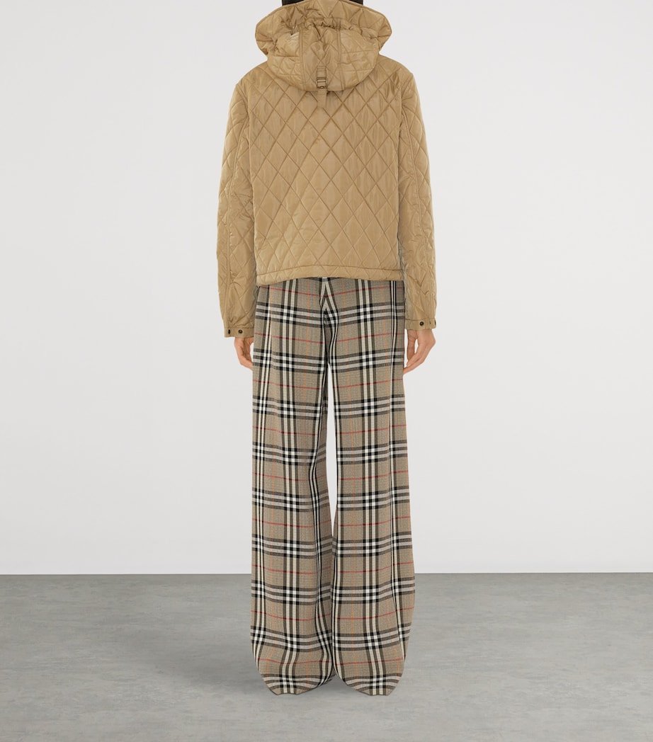 Lightweight yet substantial, this quilted jacket captures Burberry’s effortless balance of heritage and modernity. The cropped silhouette is lined with signature Burberry Check cotton twill to honour House tradition, while functional touches – a drawcord hood, press-stud pockets and two-way fastening – add practical refinement.