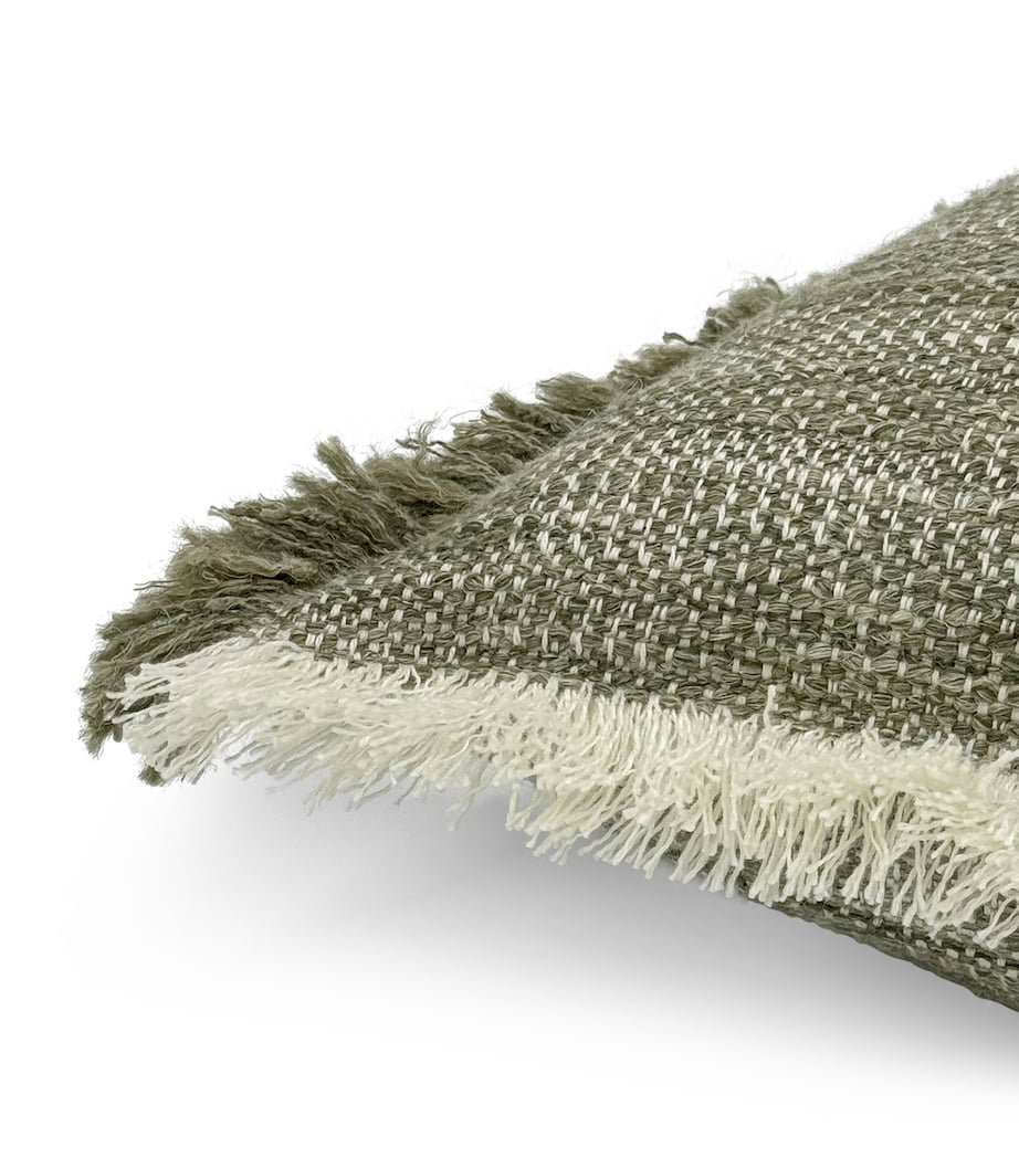 The Tatami cushion collection from de Le Cuona exemplifies fine craftsmanship – its fabric is certified by Masters of Linen, an independent quality trademark. Generously sized, this piece is adorned with handmade fringing on all sides, while a tightly woven linen-wool blend creates a robust ribbed texture. Together, these details make it a true artisanal addition to any seating arrangement.