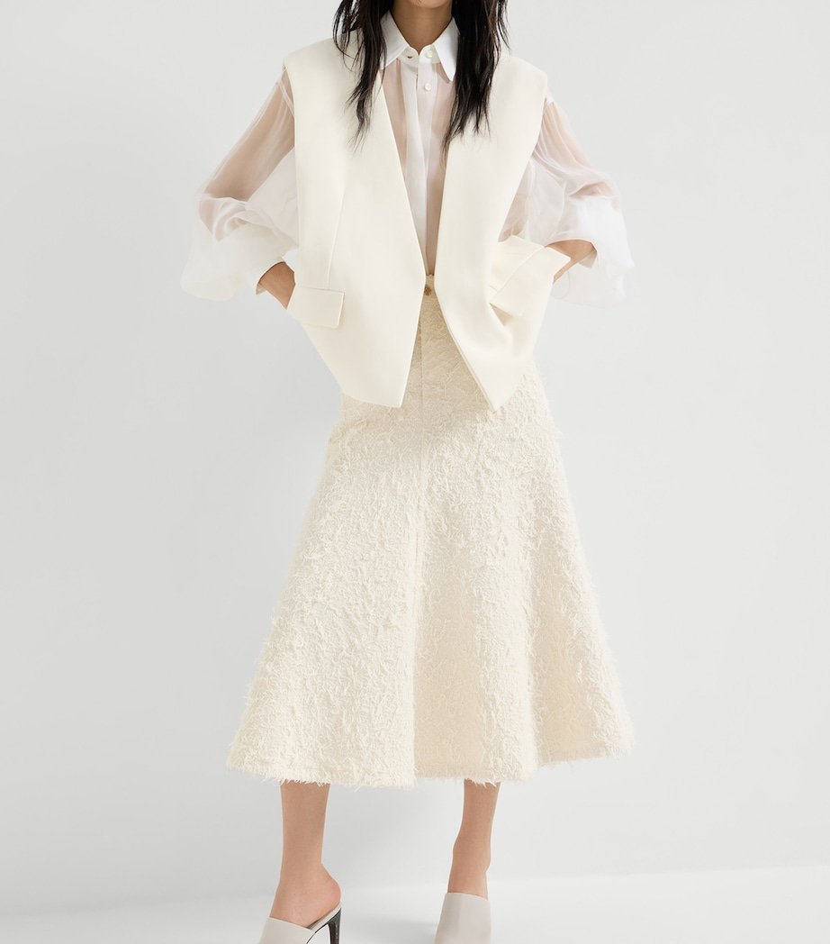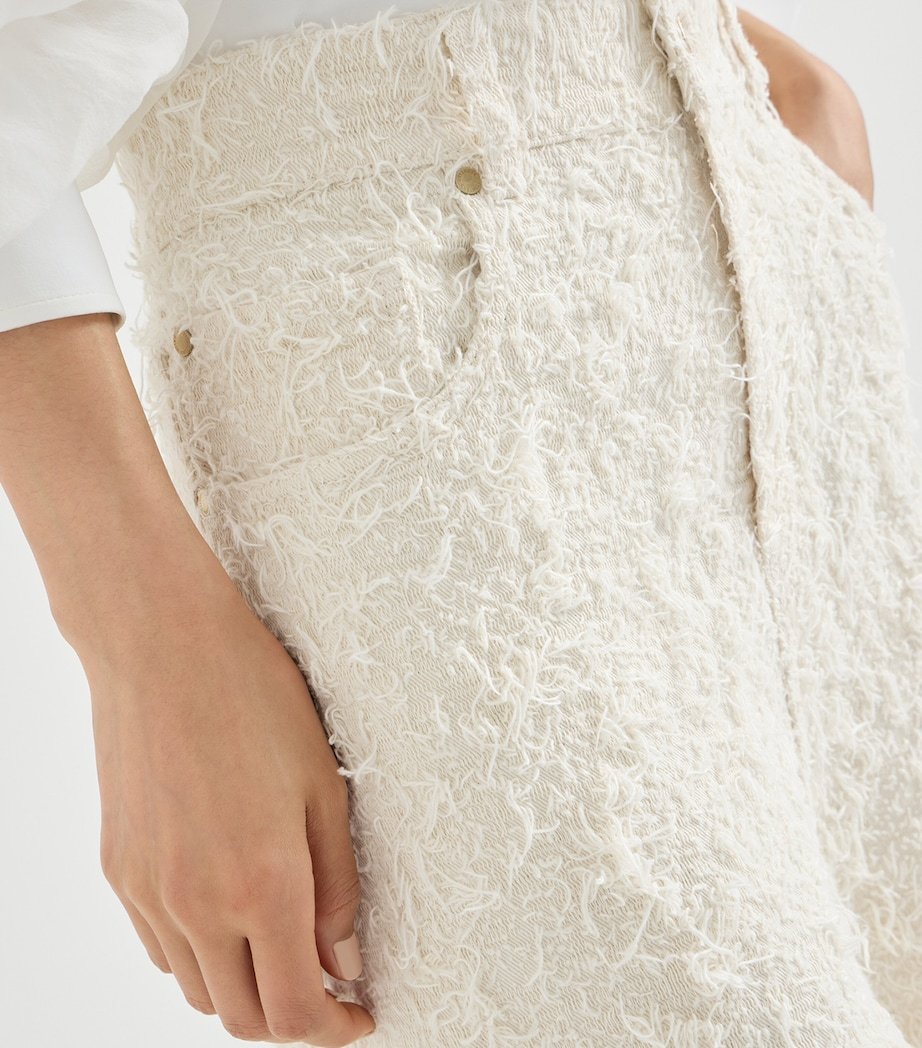 Timeless elegance beckons in every one of Brunello Cucinelli’s creations, with this denim skirt coming as no exception. Rendered with the label’s pinpoint attention towards materials, this piece is crafted entirely from cotton, imparting textural interest to its midi silhouette thanks to its fuzzy surface.