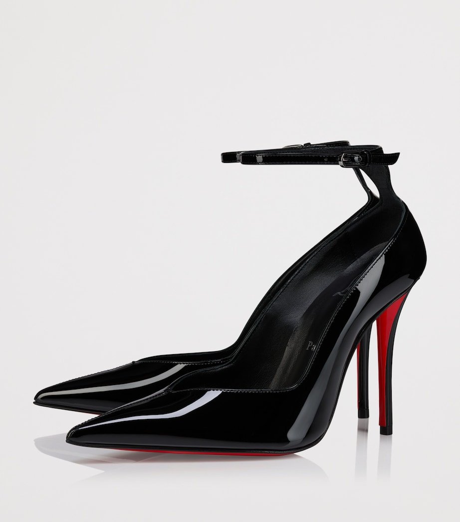Christian Louboutin spotlights harmonious geometry in its Erozee pumps, a strappy pair defined by delicate stitching over the patent leather-covered point toes and lower-cut heel counters. Of course, the unmissable flash of red is found on the sole, with the durable Everlasting finish ensuring it withstands every strut.