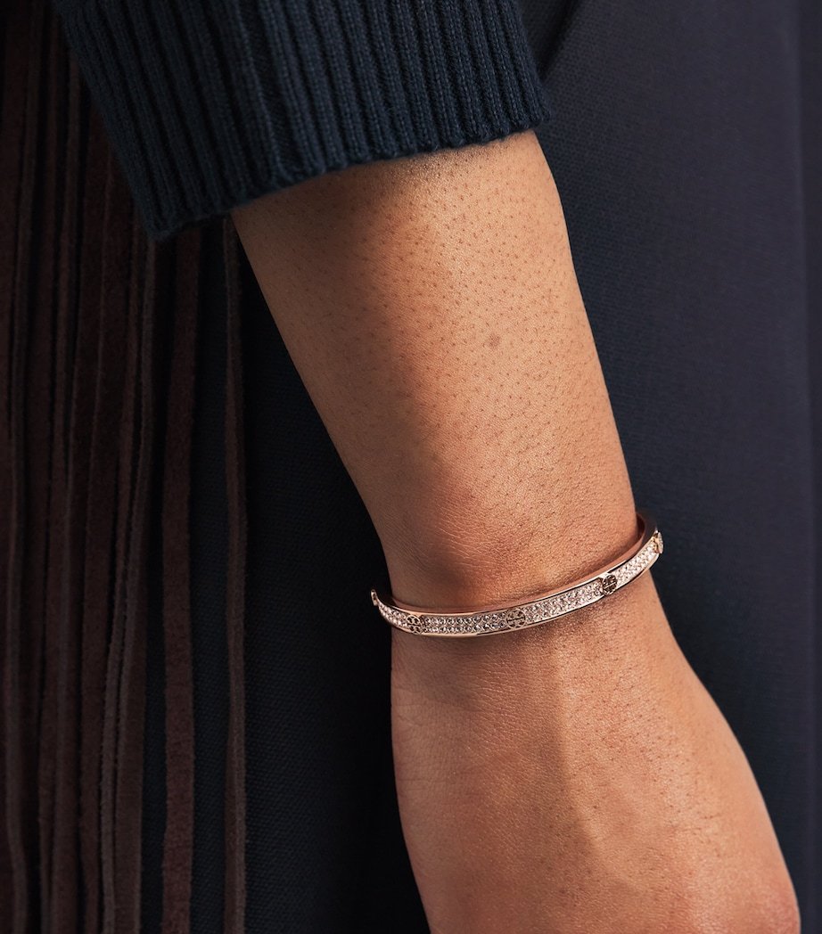 Well-travelled from a young age, Tory Burch was enthralled with Moroccan architecture upon her childhood visits to the country and the interior designs of David Hicks. Thus, the angular T logo was born to grace the label’s most coveted designs, as captured by the protruding emblems found on the embellished Icon pavé cuff bracelet.