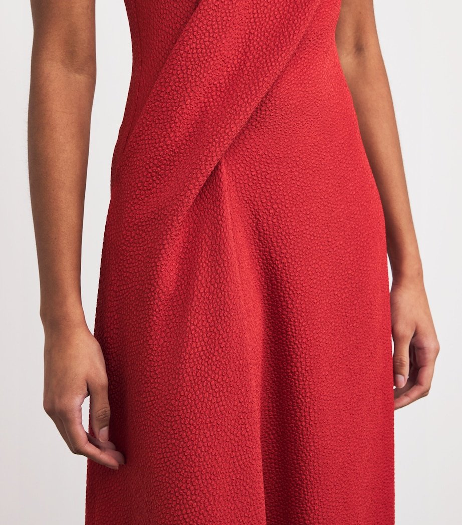 Subtle femininity is an Edeline Lee staple, with the label using draping and pleating to create soft, flattering silhouettes. The Finial dress contrasts its fitted bodice with a crossover drape that leads into a flared, asymmetric skirt to create a cohesive, flowing effect.