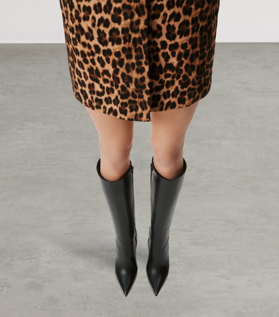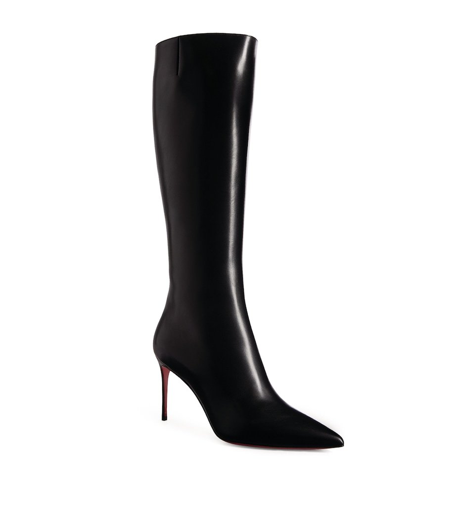 Christian Louboutin takes on a footwear classic with theKate boots. Crafted from smooth nappa leather, their classic knee-high silhouette is elevated upon a stiletto heel, with a soft almond toe and concealed zip adding timeless appeal. Nevertheless, any anonymity is at once withdrawn at the sight of the style’s scarlet red soles – a signature that could only belong to the Parisian shoemaker.