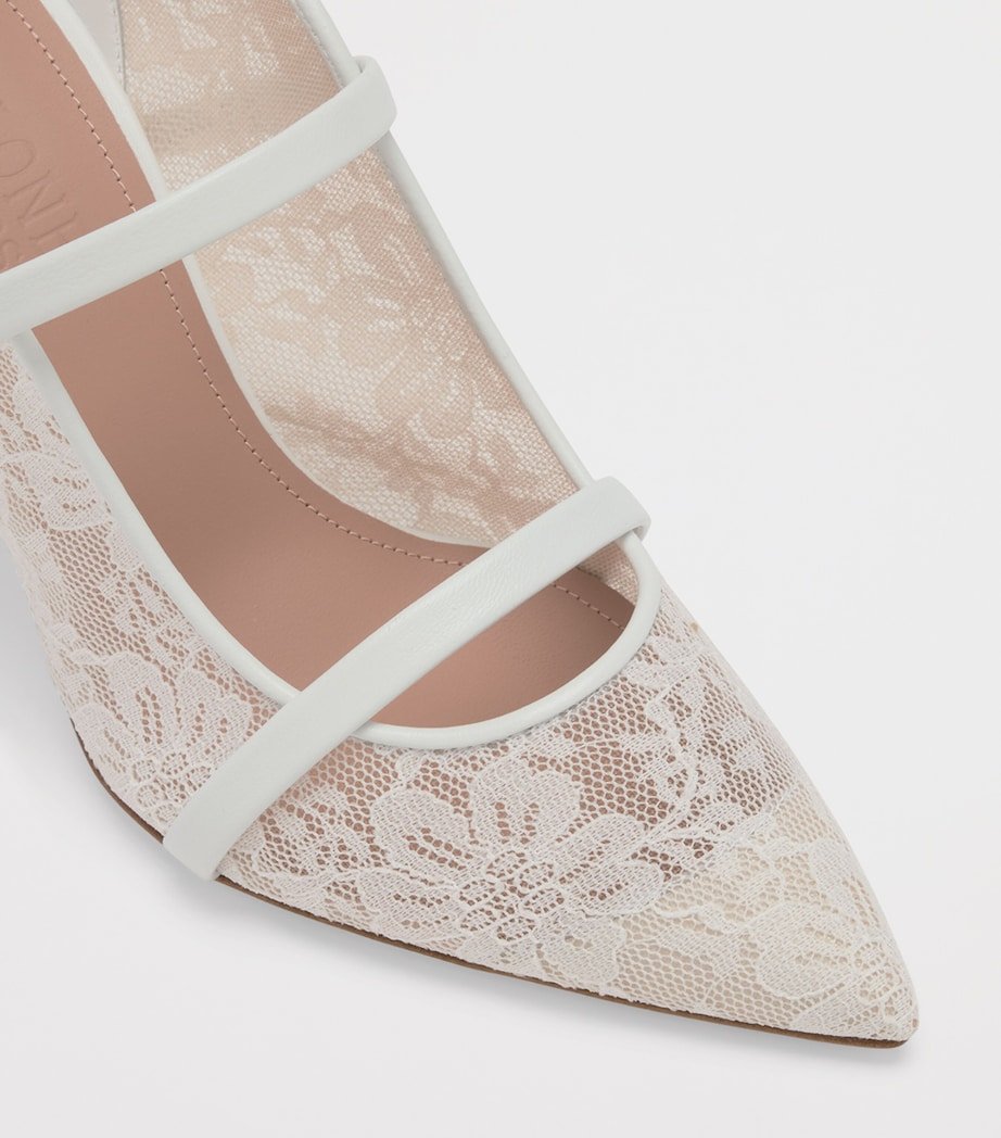 Bringing even more charm to a beloved brand icon, Malone Souliers’ Maureen heeled mules are here reimagined for bridal and occasionwear. Poised on a stiletto, the handmade pair presents soft texture with a lace upper and satin trims, cut to the British label’s signature wave profile – creating fluid lines that conclude to a sleek pointed toe.