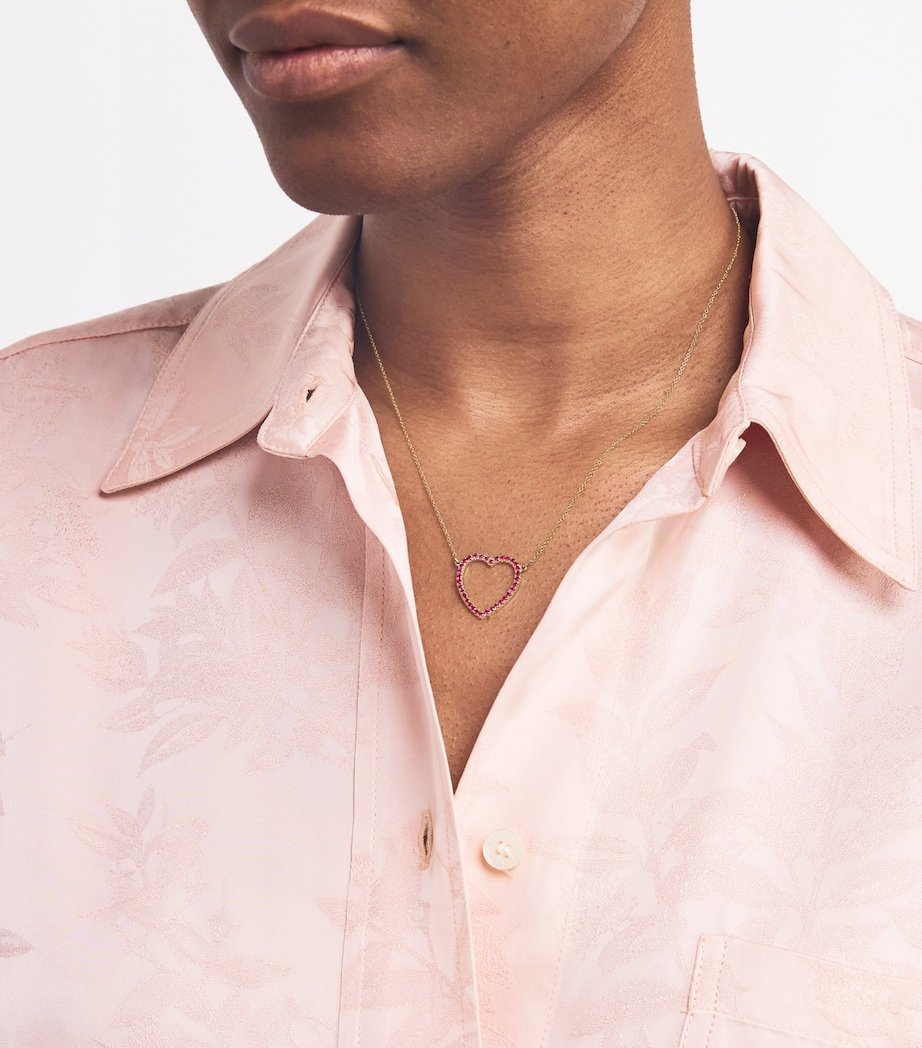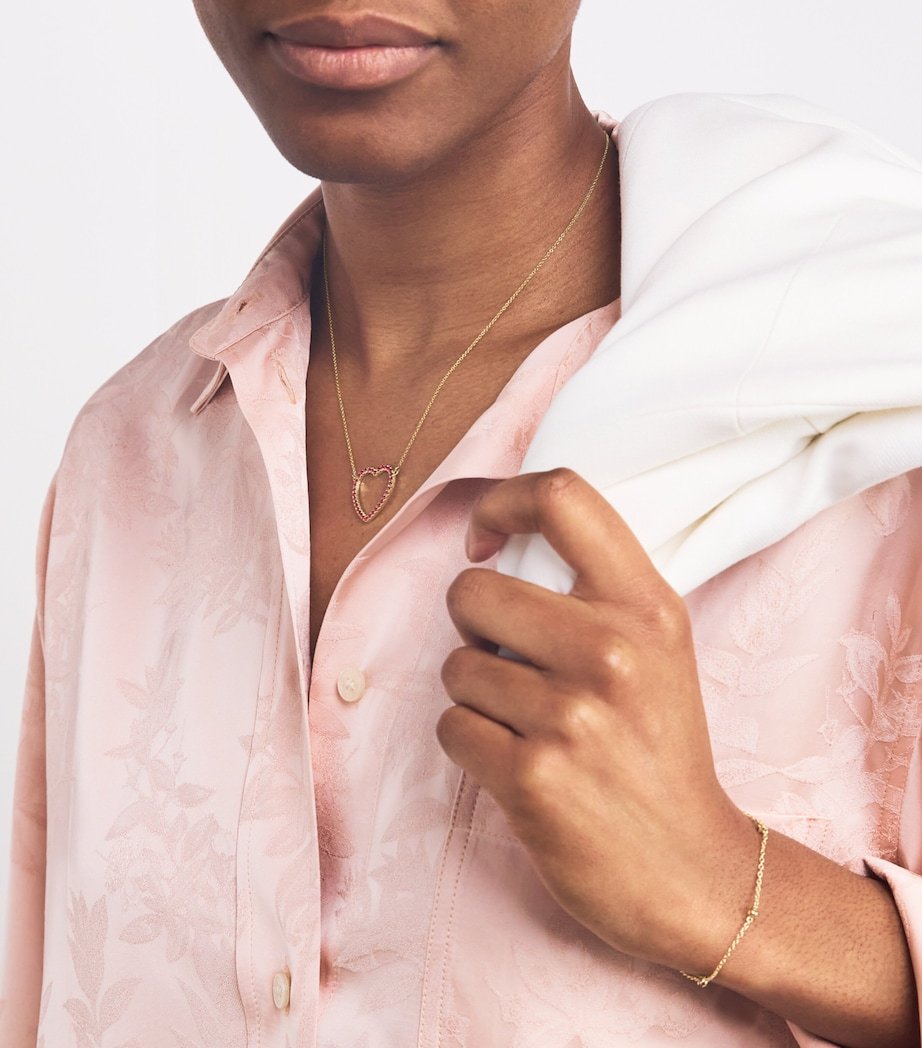 Jennifer Meyer is innately drawn to symbols – the graphic, meaningful shapes align with the brand’s ethos that jewellery should be an extension of the self. Of all the symbols in the label’s repertoire, few are as evocative as the heart. On the Edith necklace, an 18-karat yellow gold open heart is encrusted with glowing ruby stones for a romantic finish.