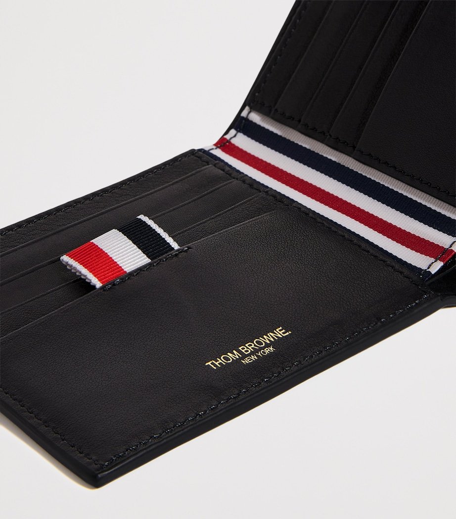 From the outside, this Thom Browne wallet tells a story of sleek simplicity, with buttery leather in a monochrome colourway defining its exterior. Open up the bifold design to reveal functionality and brand signatures, both delivered in spades as a host of pockets and slots are joined by a charming tricolour striped lining and a grosgrain tab.