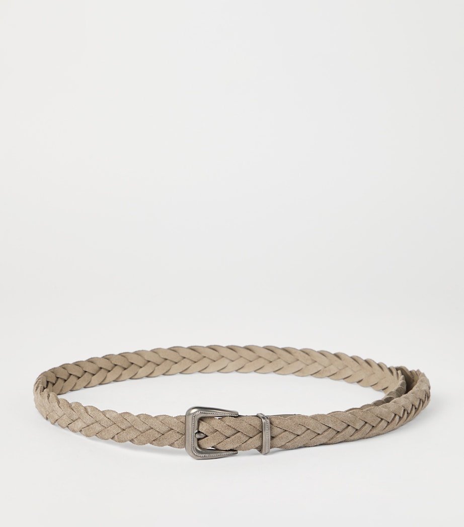 Distinguished by a nearly 50-year-old legacy of fine craftsmanship, Brunello Cucinelli elevates even the most streamlined of pieces with its trademark elegance. Consider this belt: supple leather is woven together to create the braided silhouette, which is further enhanced by the exquisitely embellished silver-tone buckle.