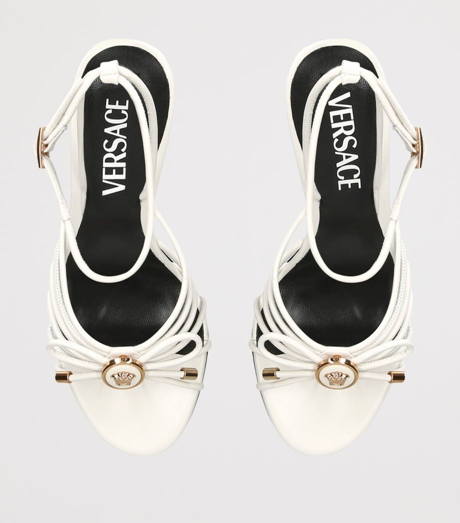 Versace’s links to Greek mythology go right back to the foundations of the brand. Founder Gianni Versace’s childhood in Reggio Calabria, Italy, was steeped in Hellenic culture, something he later drew on when placing the Medusa head at the centre of his label. In the Opera Bow sandals, the emblem features upon a roundel at the centre of a bow that sits to the toe.