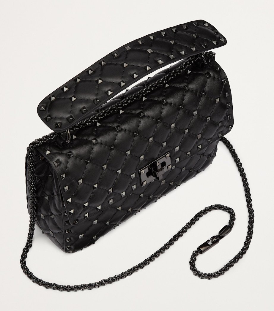 Reimagining its trademark pyramid studs with an added dose of edge, Valentino Garavani presents the Rockstud Spike shoulder bag. Crafted in Italy from premium leather, it features a tactile quilted outer that nods to another of the House’s most illustrious codes, while a turnlock fastening ensures a truly elegant finish.