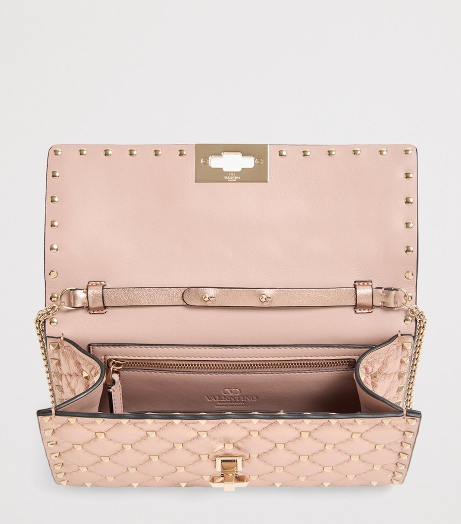 Reimagining its trademark pyramid studs with an added dose of edge, Valentino Garavani presents the Rockstud Spike shoulder bag. Crafted in Italy from premium leather, it features a tactile quilted outer that nods to another of the House’s most illustrious codes, while a turnlock fastening ensures a truly graceful finish.