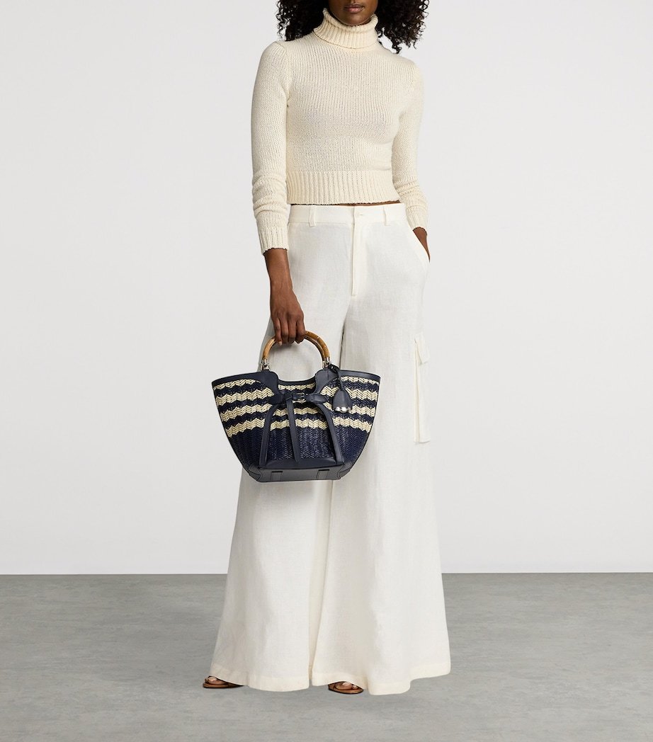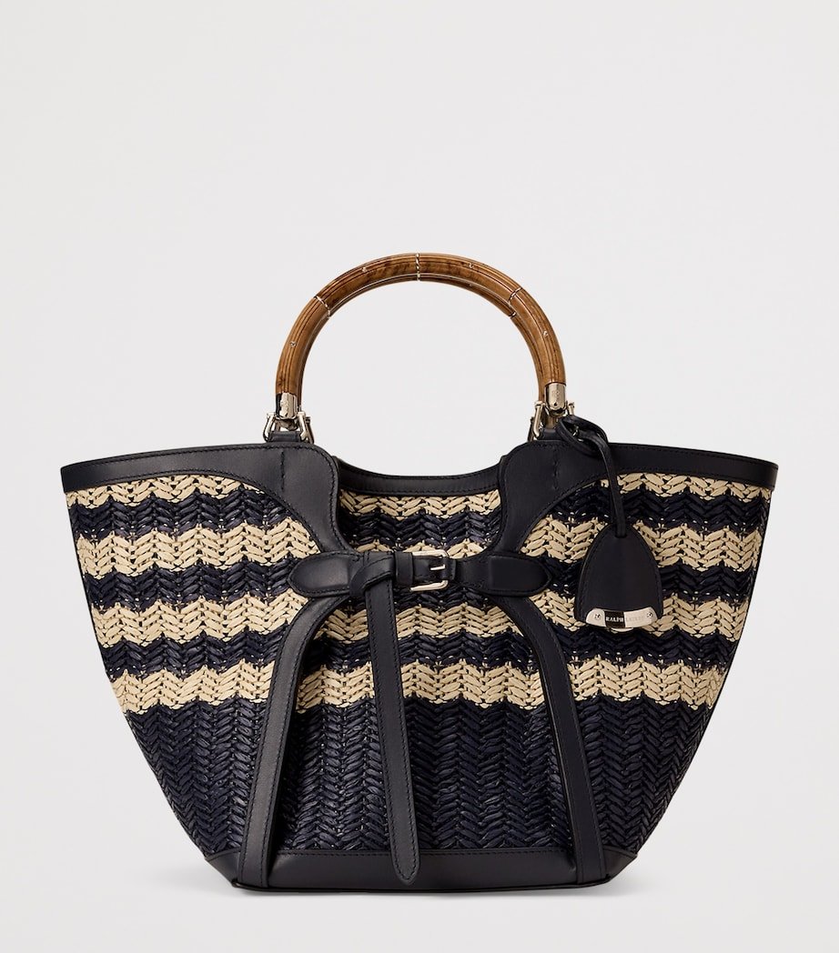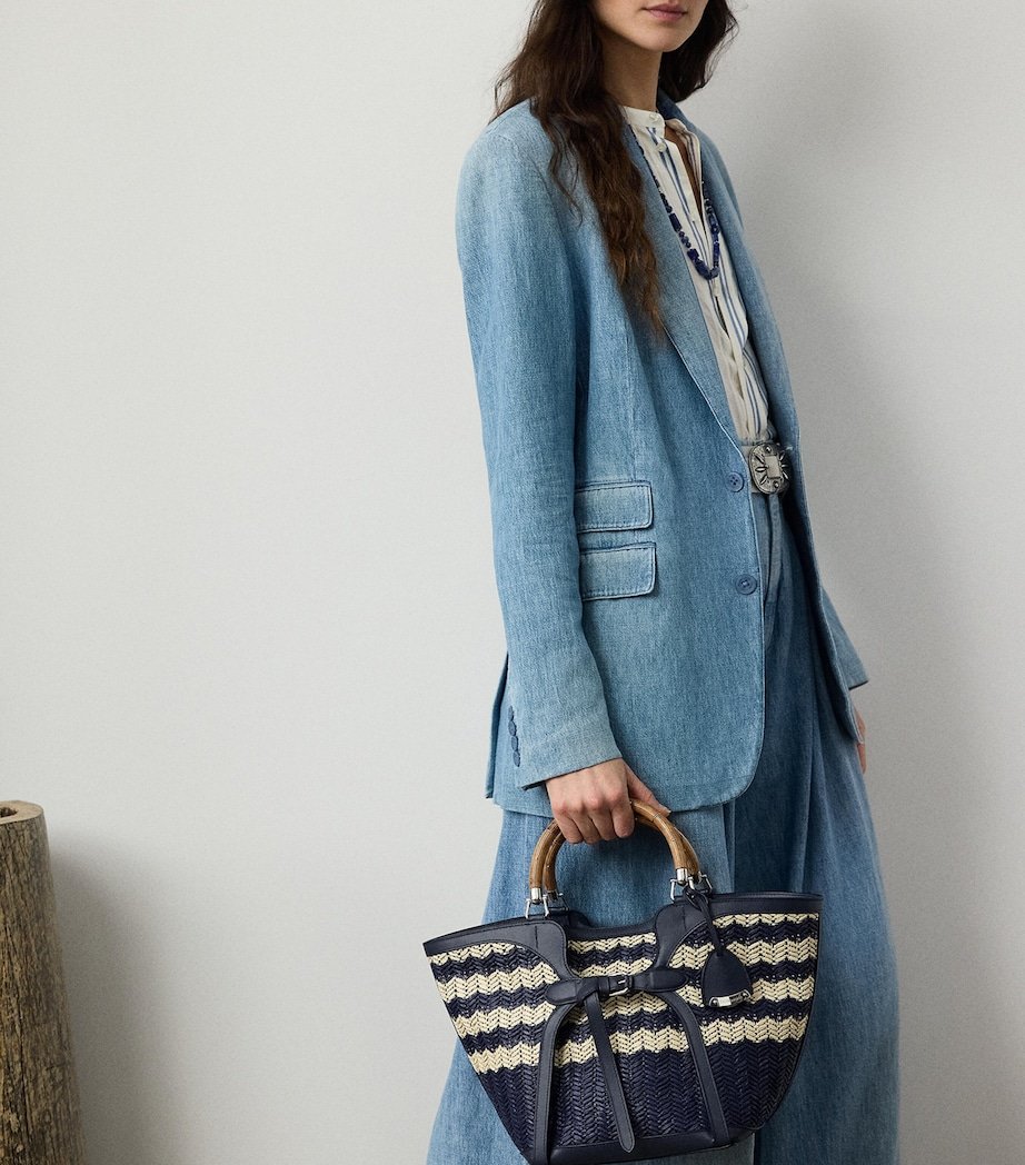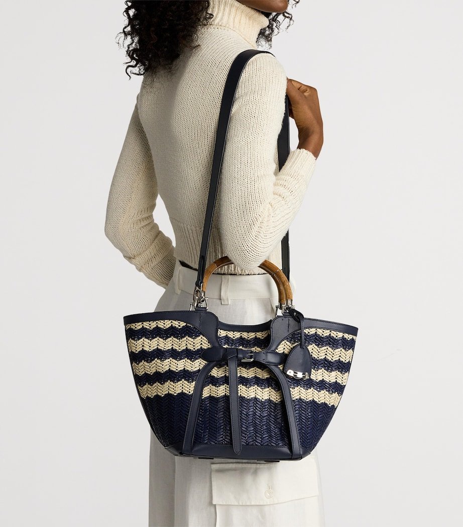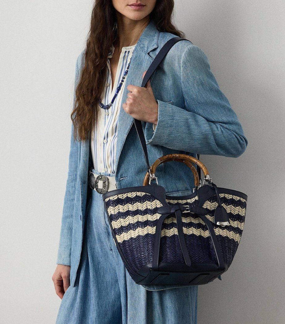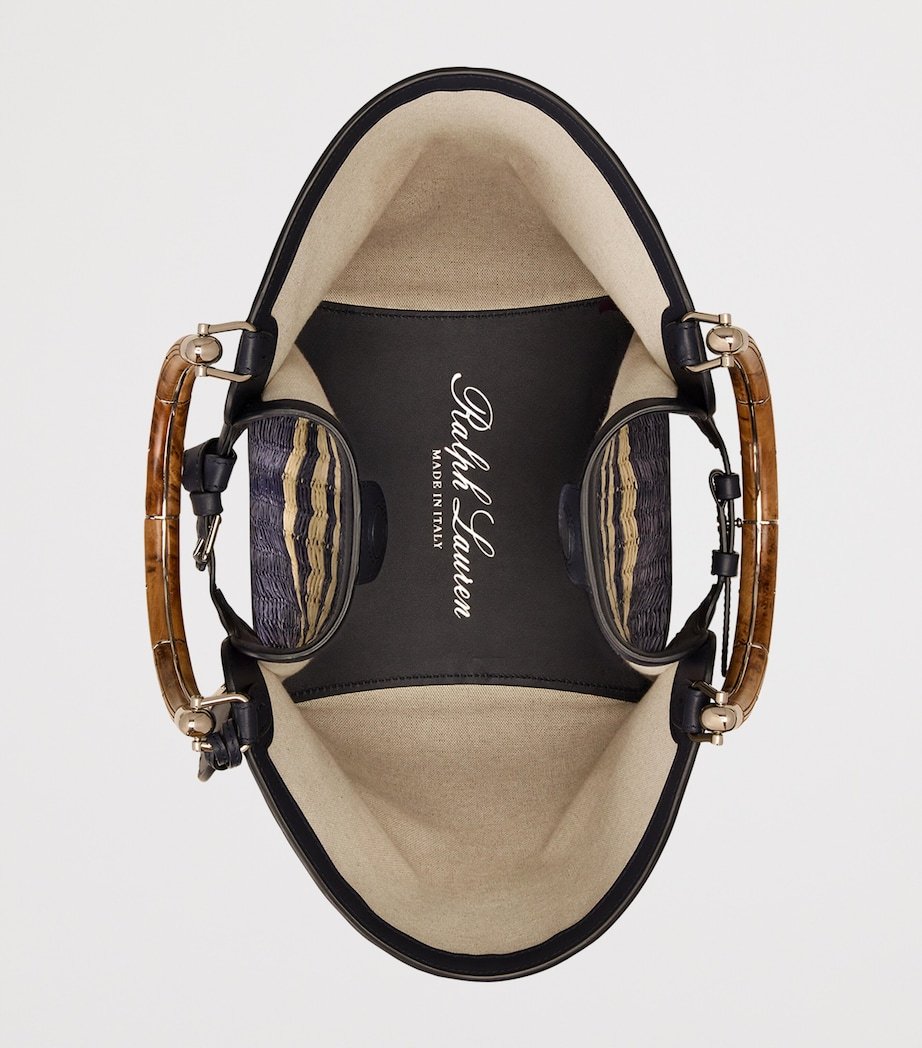 The Ralph tote bag from Ralph Lauren Collection is fast-approaching staple status, encapsulating the elegance and sophistication of the luxury line, while still maintaining the effortless ease the main collection is known for. This woven piece offers an enchanting balance of exclusivity and versatility, featuring two curvaceous wooden top handles, a detachable crossbody strap, leather accents and engraved monogram detailing.