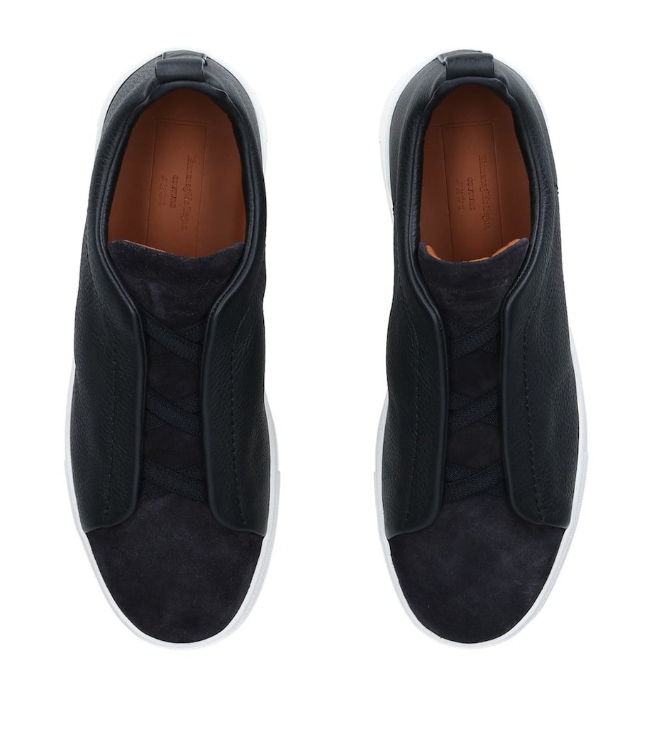 A perfectly sleek silhouette from Italian designer Zegna, the Triple Stitch sneakers draw their name from three crossover laces upon the vamp – capturing the refined aesthetic that the brand is renowned for. Luring you in through the grained leather upper and sumptuous touch of suede trims, this pair will instantly enrich any casual ensemble.