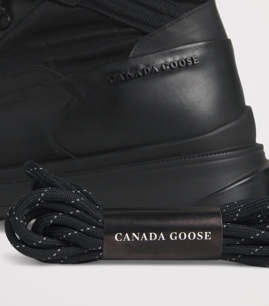 Canada Goose translates its arctic expertise into street-ready form with the Keystone Boots. Combining leather and nylon panels with a waterproof HDry membrane, they’re engineered for protection in unpredictable weather. The bellows tongue blocks out dirt and water, while metal eyelets and a wraparound lace system ensure a secure fit. Built light but ready for anything, they’re the perfect balance of function and city attitude.