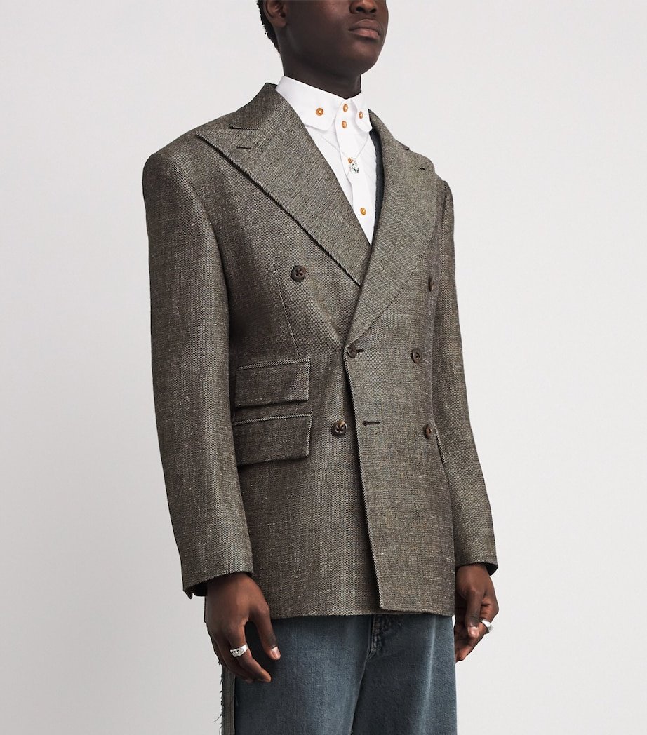 Returning to archival designs allows Vivienne Westwood to explore past styles with modern sensibilities, and this iteration of the Niesen jacket is a classic example. The linen-virgin wool fabric is durable and tactile, while the large peak lapels bring an abundance of flair to the business-inspired look.