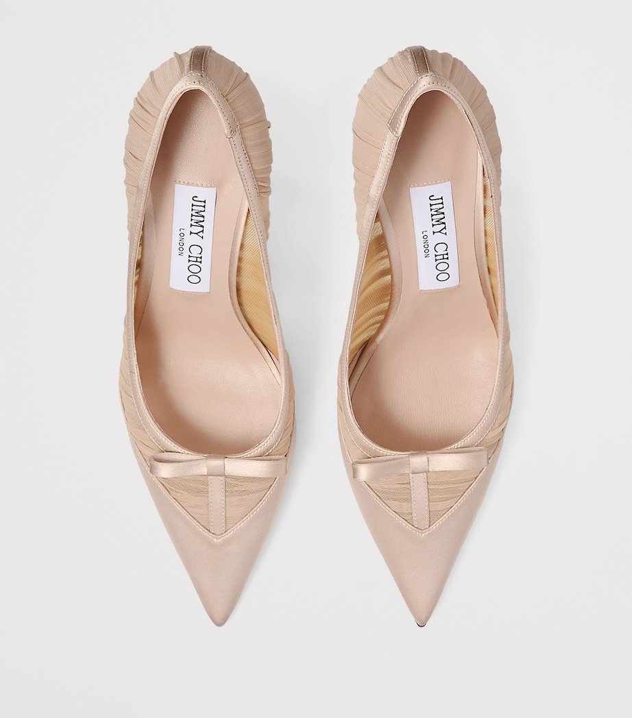 Jimmy Choo presents the Italian-made Love pumps through a refreshed lens, draping the style’s signature mesh in a ruched finish for a romantic finish. The textured fabric is complemented by blush-tone satin that structures the pair, while a bow on the vamp augments the style’s innate femininity.