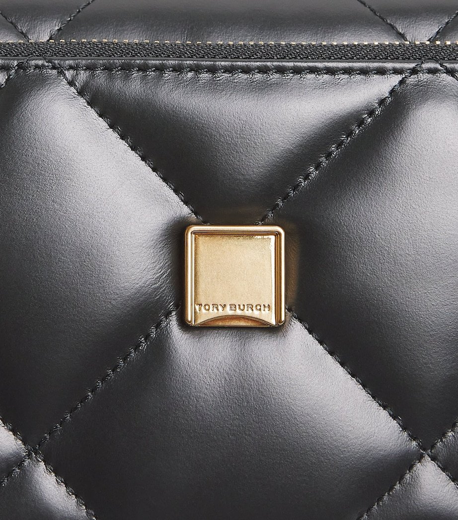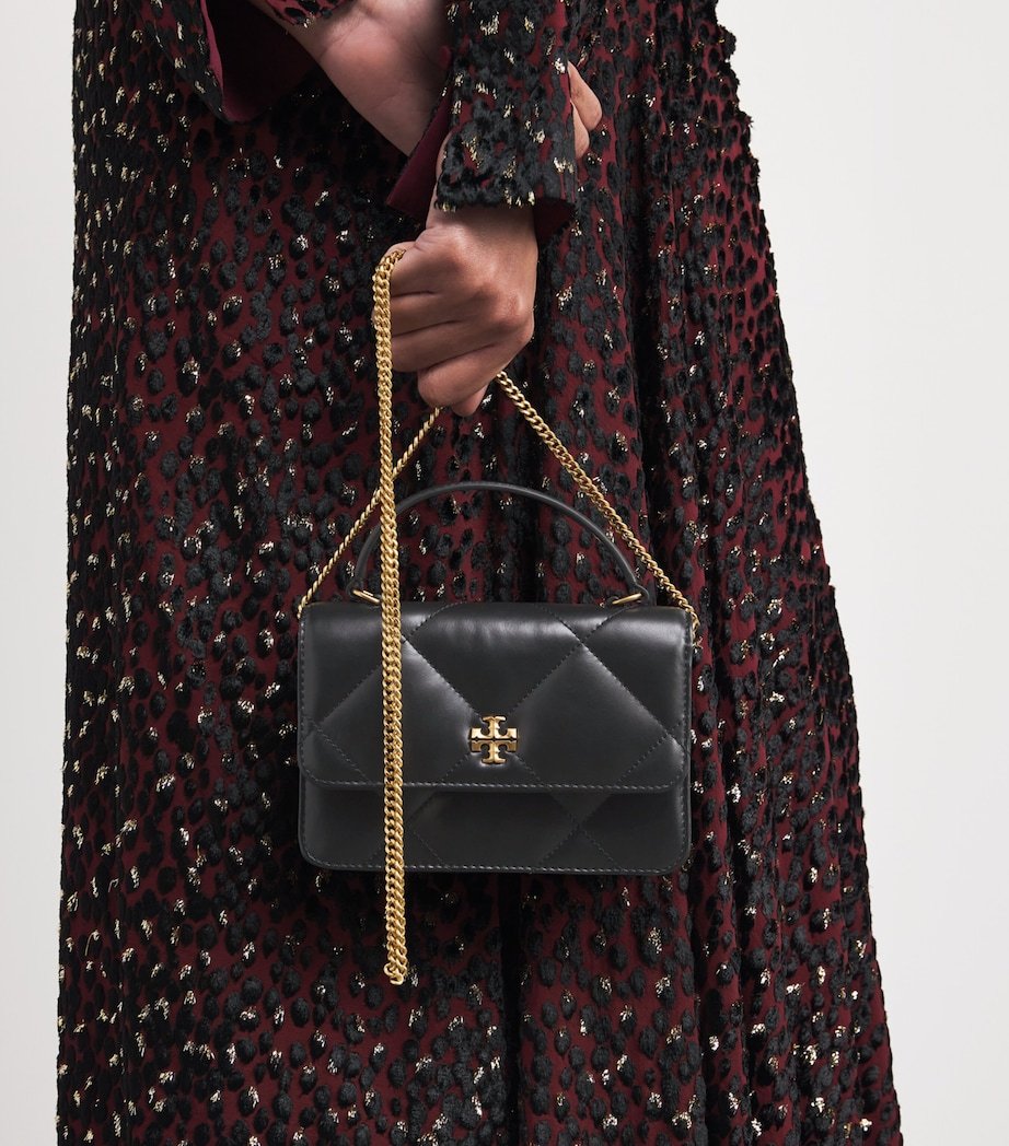 Quilted leather proves to be the perfect backdrop for Tory Burch’s gleaming logo to steal the spotlight on the Kira top-handle bag. True to the label’s glamorous outlook on style, the carrier will feel right at home styled next to your heels and party dresses.
