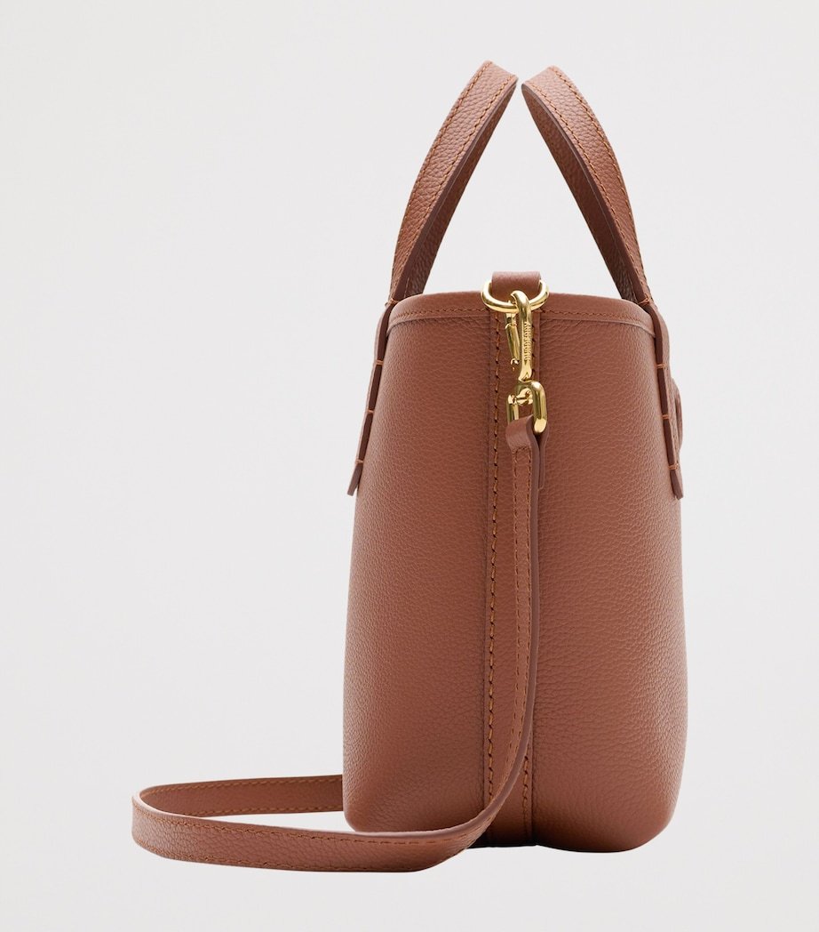 The Bloomsbury tote bag is a masterclass in versatility. The reversible design offers a softly grained calf leather on one side, and a cotton and linen-blend side rendered in a seasonal colourway reminiscent of delightfully spiced gingerbread. Of course, the hallmarks of the wider collection remain, including the leather and metal Knight stamp – a motif the House first used on its bags in the ‘80s.