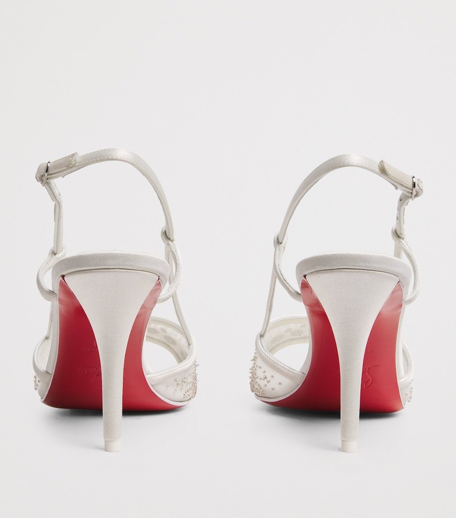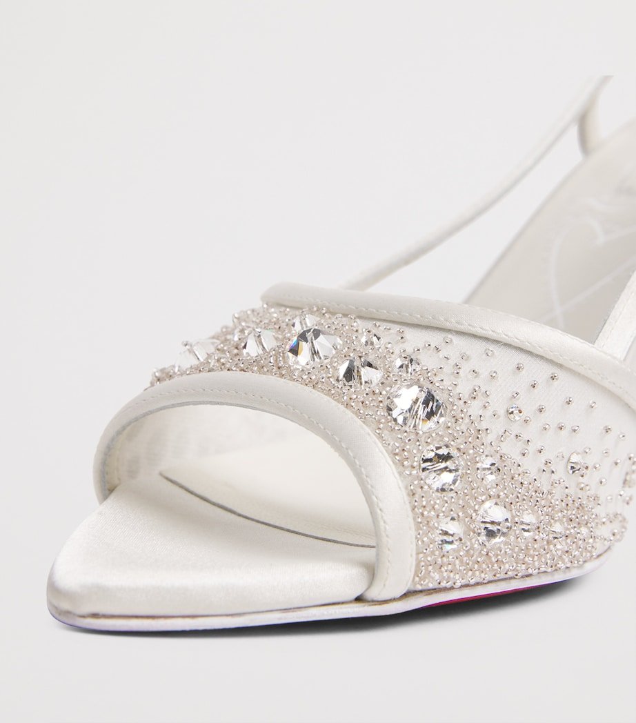 The Miss Z slingback heels are natural successors to the Kate and Pigalle silhouettes, all designed by king of cobbling, Christian Louboutin. Comfortable flair is prioritised through the elongated toe, expanded width and soft suede lining, while the iconic red soles have an innovative coating that ensures wear-resistance and long-lasting vibrancy. For this bride-ready pair, shimmering strass extends above the mesh uppers, enhancing the illusion of an invisible vamp.