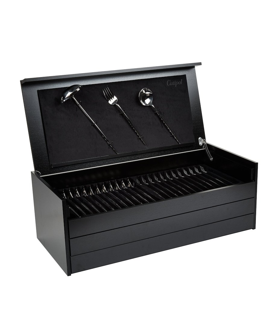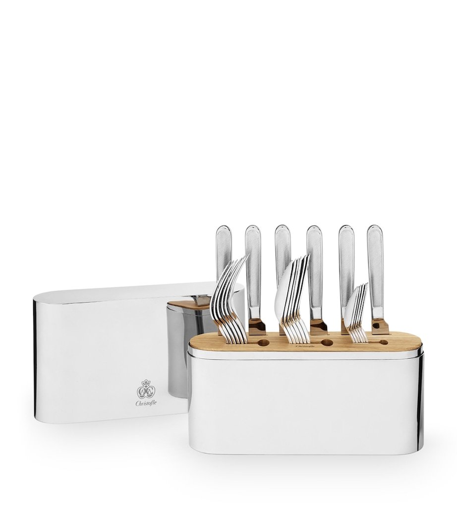 Allow Christofle to bring a silver-plated touch to your dining table with the Mood Asia flatware set. Offering a 24-piece selection inspired by Asian gastronomy, the luxurious selection is presented in a glistening oval-shaped chest, making it a perfect centrepiece.