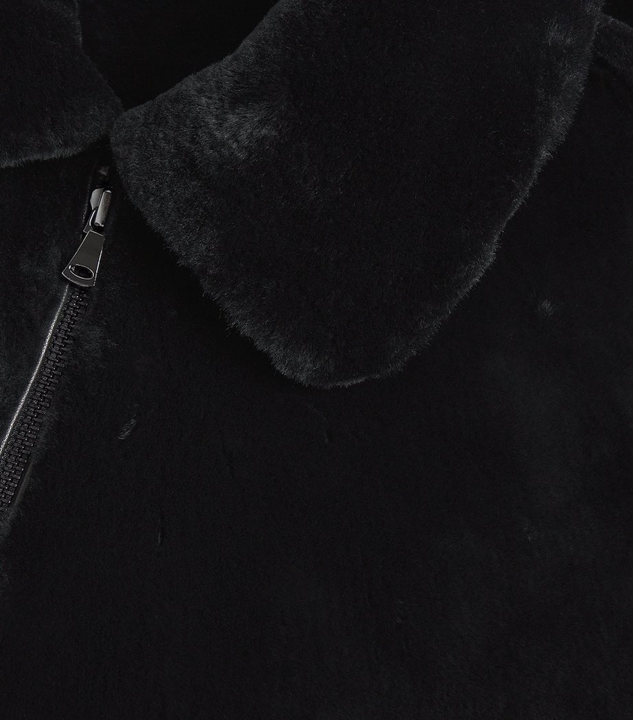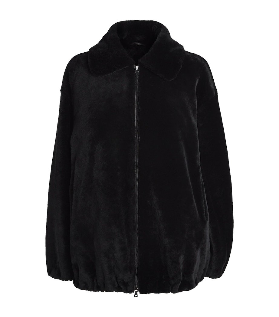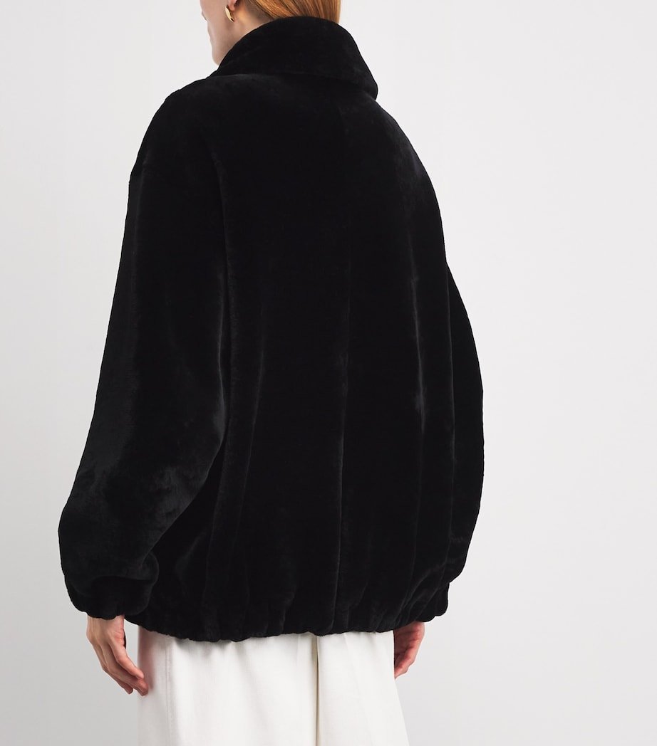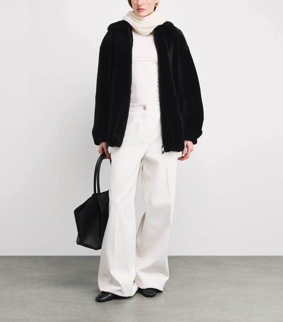 Nour Hammour proves even the most athletic silhouette can be transformed through its fur-devoted lens with this bomber jacket. While the design’s structured shaping and tailored collar remain, the fabric is rendered in luxurious black shearling, evoking the glamorous style of Hollywood’s screen sirens in an endlessly versatile silhouette.