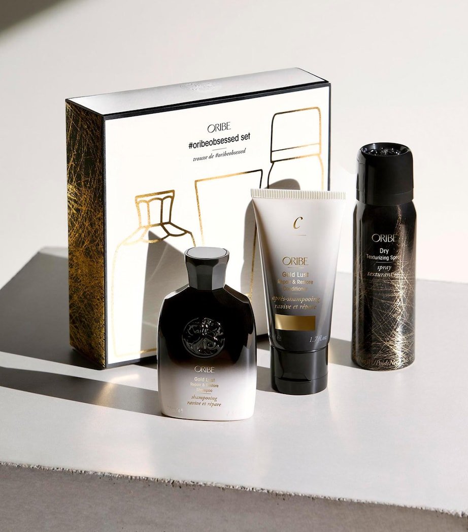 Combining centuries-old healing seed oils with modern technology to reawaken and revitalise damaged hair, the Oribe Obsessed gift set transforms dry, split ends into glossy, healthy strands. The shampoo and conditioner work in tandem to seal and repair fractured hair, while the Dry Texturizing Spray adds volume and texture, absorbing excess oil at the roots without leaving any powdery residue.