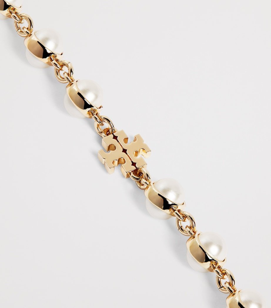 Tory Burch has made pearls a central theme of its jewellery collections over recent years and continues to celebrate them through pieces like this chain bracelet. The delicate, gold-tone brass profile is illuminated by the luminous gemstones and a subtle Double T monogram.