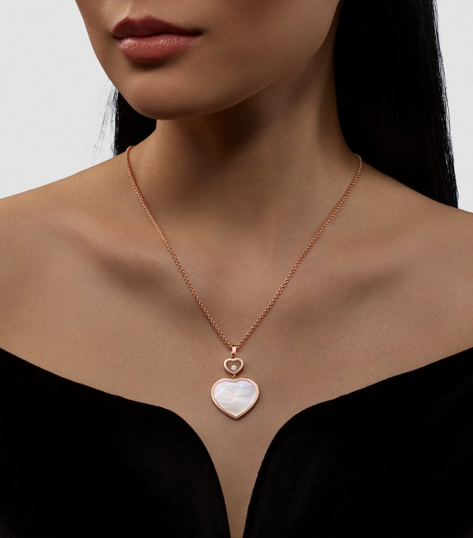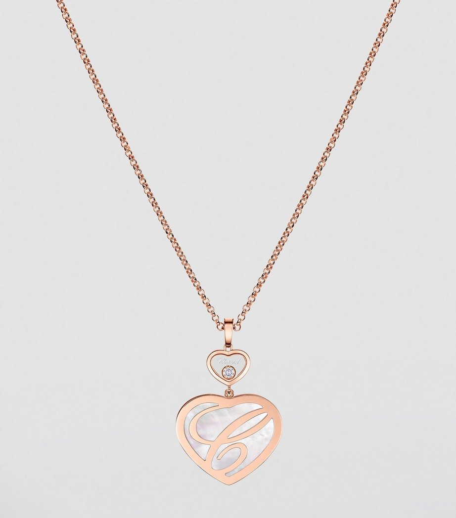 Few emblems boast the evocative power of the heart. Ever unable to resist a design with deeper meaning, Chopard enlists the shape as the foundation of its Happy Hearts collection, employing the universal symbol of intimacy, affection and generosity to echo its own values. Wear this 18-karat rose gold necklace to pledge your allegiance to the heart and House – it sees the motif repeated twice, the larger rendered in mother-of-pearl and the smaller cradling a twinkling moving diamond.