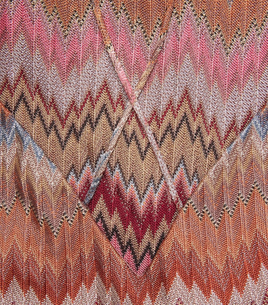 Made using Raschel weaving machines, Missoni’s zigzag motif has been a brand icon since the 1960s, showcasing the House’s love for colour and pattern. This sleeveless maxi dress presents an elegant interpretation of the design, featuring the bold chevron pattern in a delicately woven, multicoloured finish.