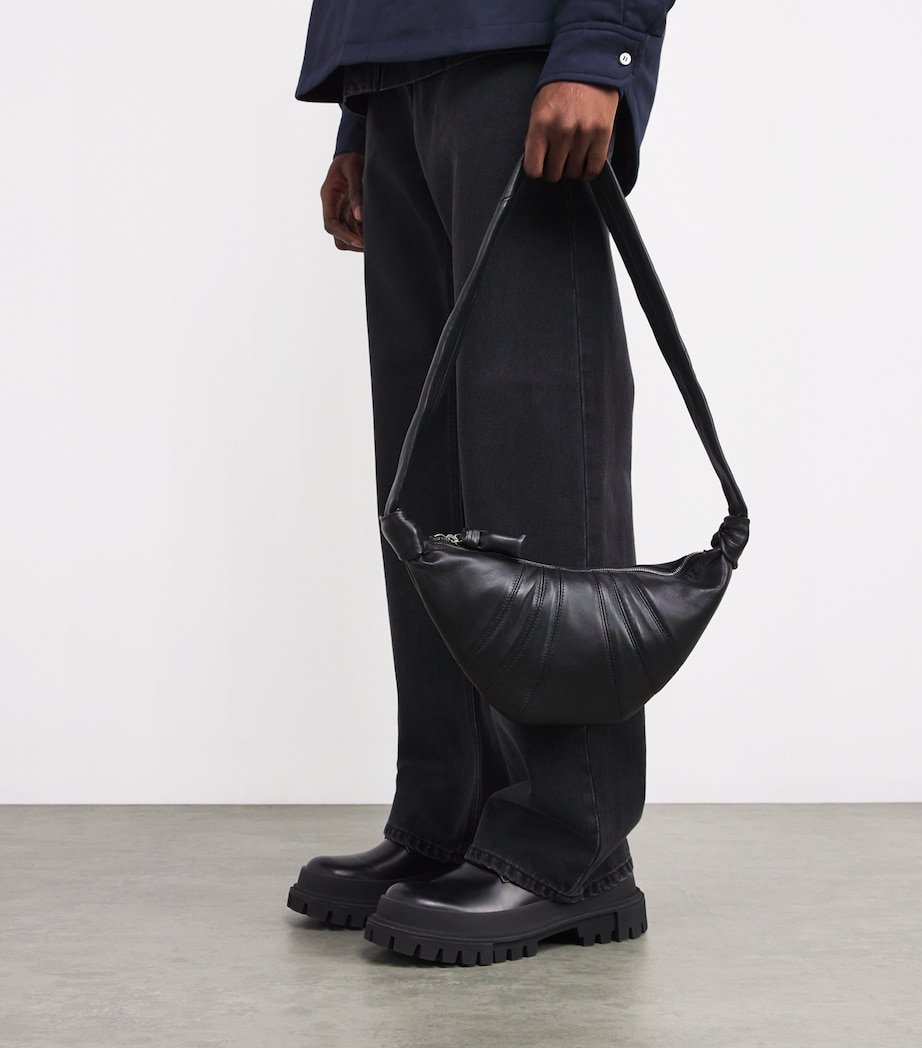 The small Lemaire Croissant bag captures the avant-garde sensibility that surrounds the fashion house, playfully designed to resemble a classic French pastry. It’s been cut from buttery nappa leather with a compact-yet-capacious silhouette that grants hands-free practicality. Effortlessly chic, it’s complete with a knotted strap that modestly suspends across the body.