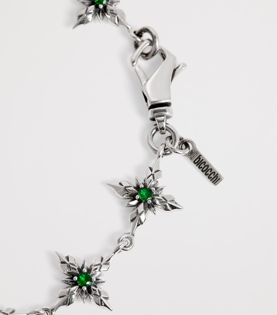 Emanuele Bicocchi’s multi-cross crested bracelet reflects the House’s devotion to symbolic design and meticulous craftsmanship. Handmade in Tuscany from hallmarked 925 sterling silver, the bracelet is formed from a sequence of finely sculpted pendants, each set with glistening zirconia crystals. Linked by delicate rings for fluid movement, it fastens with a sculpted lobster clasp – an understated mark of precision and intent.