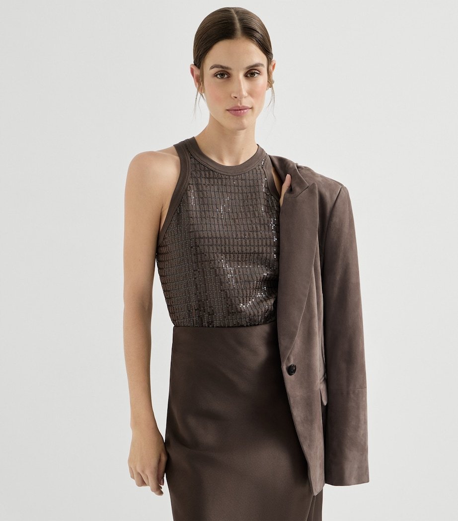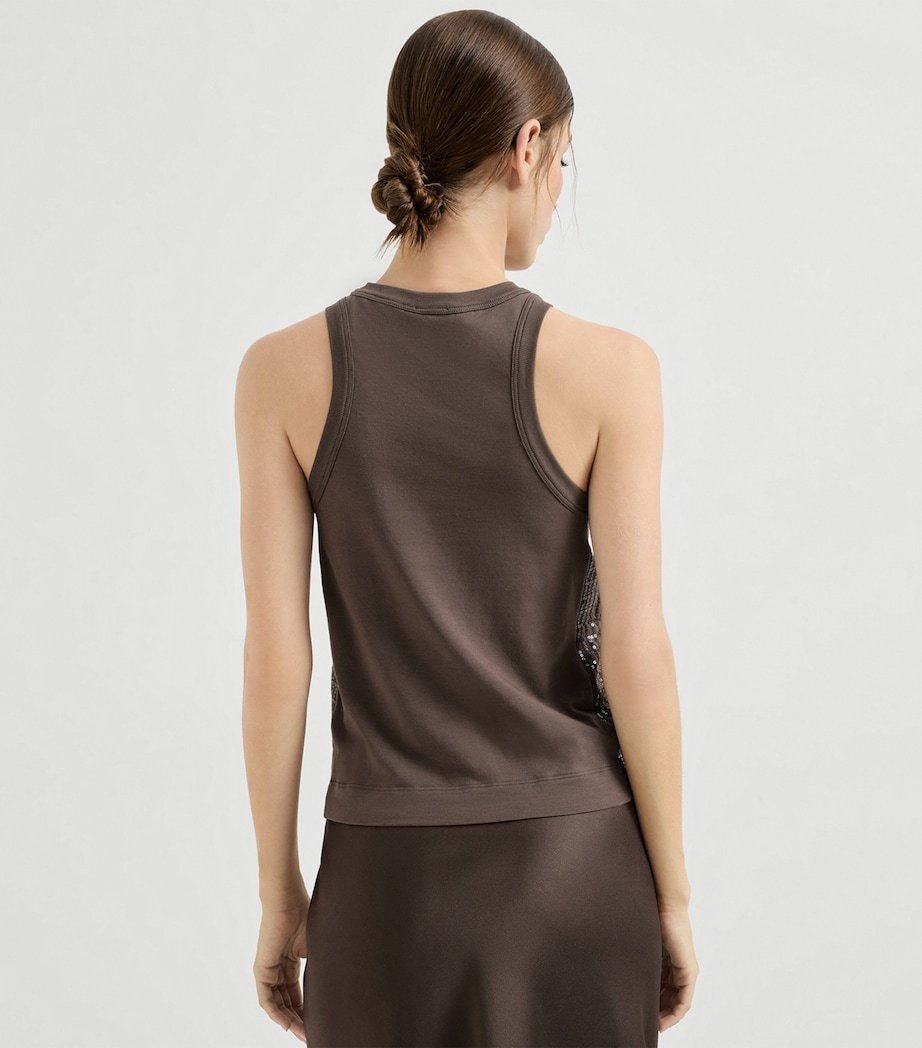 Whether your everyday ensembles need a touch of glamour or you want to steal the spotlight on your next night out, this tank top from Brunello Cucinelli is the perfect choice. The stretch-cotton fabric delivers a soft hand feel and enough flexibility to allow excellent ease of motion, while the sequin embellishments guarantee you dazzle.