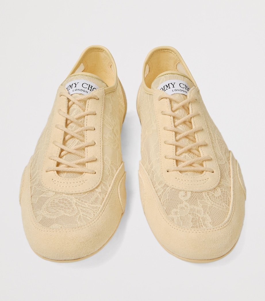 Jimmy Choo updates the classic low-top sneakers with a whimsical take on the contrasts between sporty and feminine footwear. The Sunny F sneakers have uppers made from suede panelled with custom floral lace, subverting the athletic-inspired silhouette. The textured pair boasts a cushioned lining set atop a compound footbed and rubber sole for premium comfort.