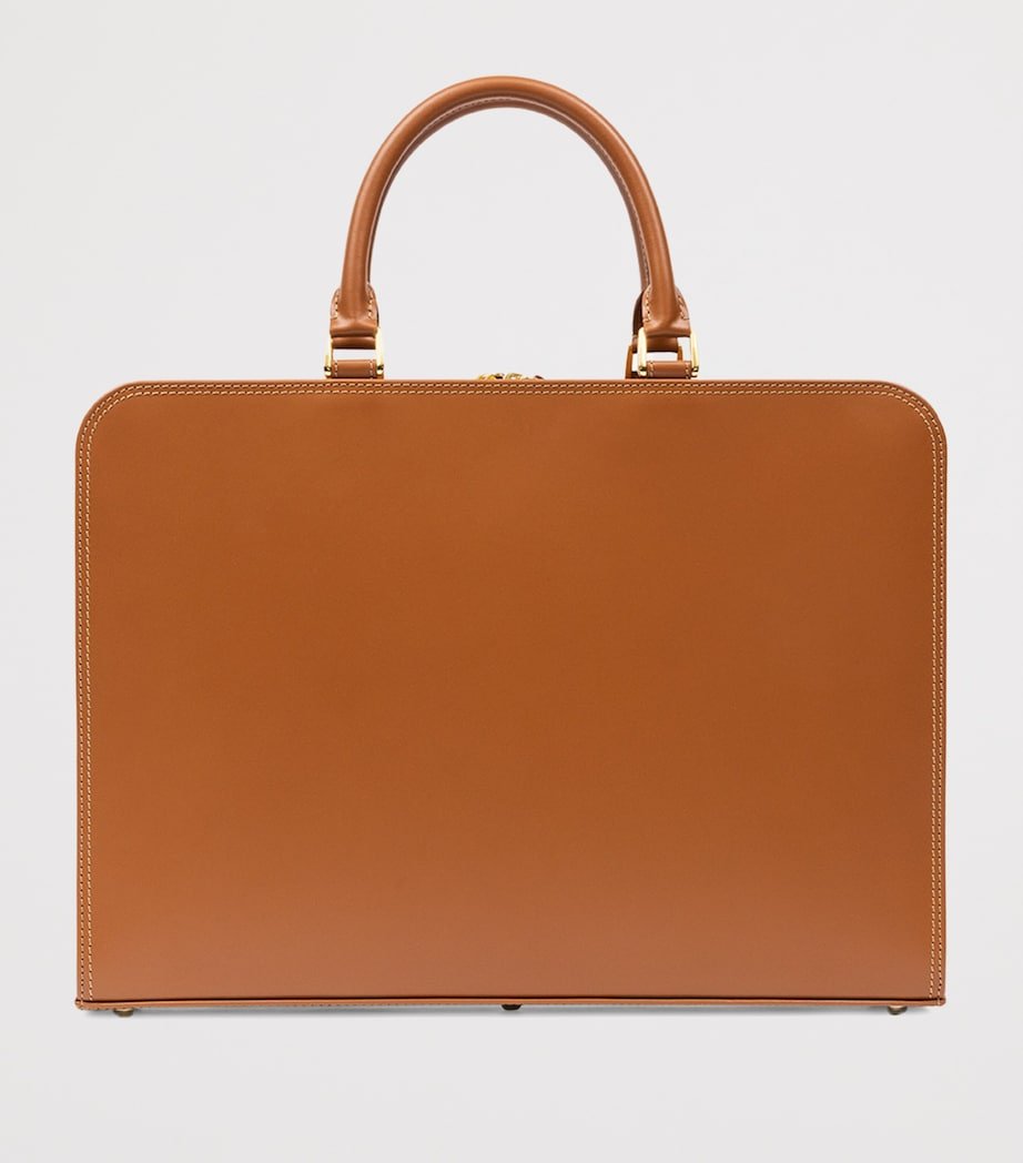 Introduce the legacy of Swaine into your morning commute with the Kensington briefcase. Handcrafted by artisans in England, this piece is designed to age beautifully over time, reflecting the brand’s centuries-old commitment to quality. It features twin top handles, a buttoned laptop compartment, and a discreet front logo – a subtle nod to the heritage of one of Britain’s oldest luxury houses.