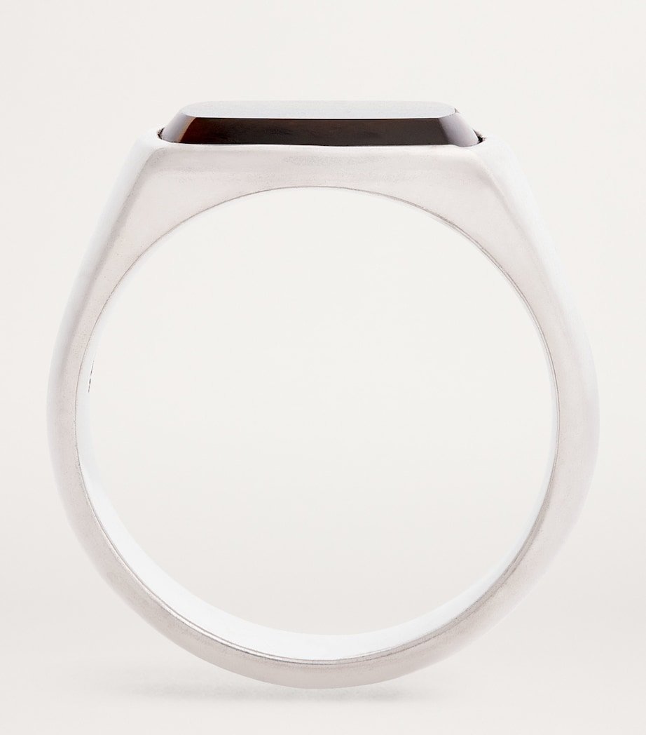 Designed to be unisex and minimalist, Tom Wood’s Cushion silhouette is a staple aesthetic of the Norwegian brand. For this ring, the rounded square is filled with a custom-cut Tiger Eye stone in a polished bezel and rendered in recycled sterling silver coated with white rhodium to strengthen the surface and prevent tarnishing.