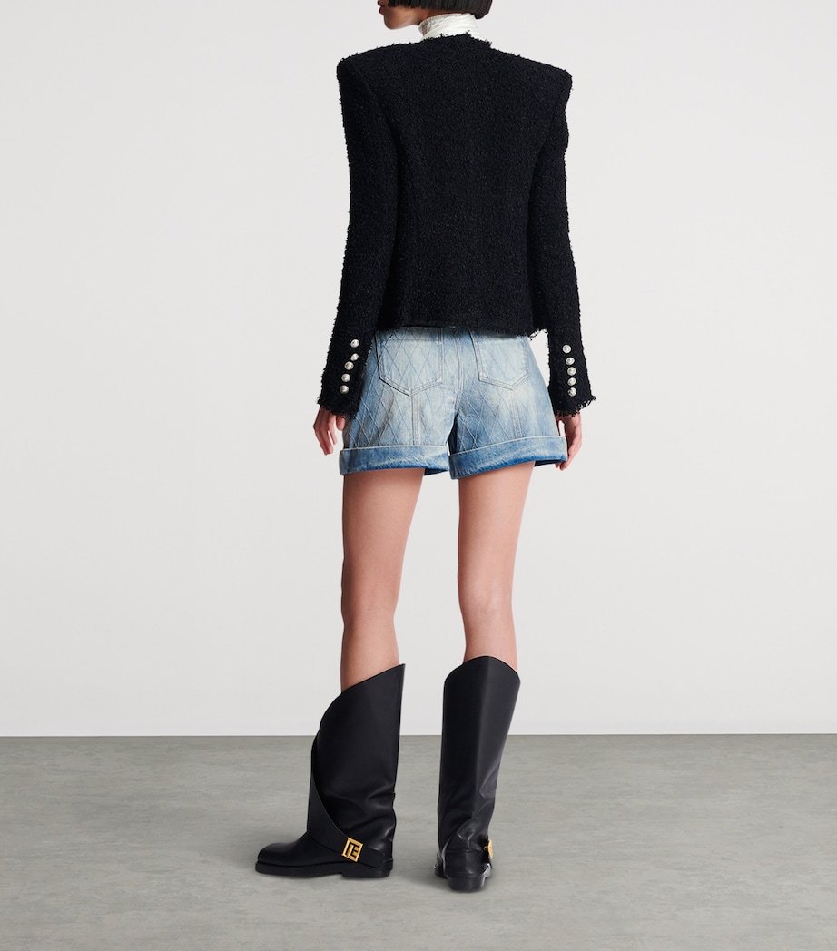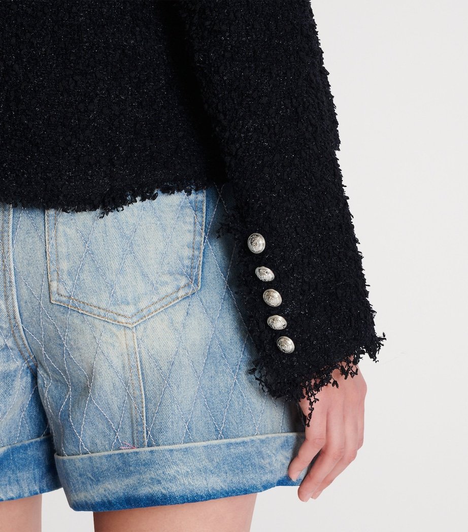With tailoring being a strong focal point in Balmain’s repertoire of seasonal separates, it’s no wonder the Parisian Maison riffs on a classic tweed suit with this jacket. The style is left with raw edges and an open front, eschewing its rigid formality in favour of a more casual look.