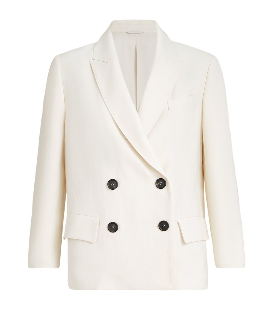 Driven by fine materials and impeccable craftsmanship, Brunello Cucinelli has delivered elegant silhouettes since 1978. Cut from linen-infused twill, this blazer is rendered with an easy sophistication, as exemplified by its lightweight structure and subtle monili beading along the collar.
