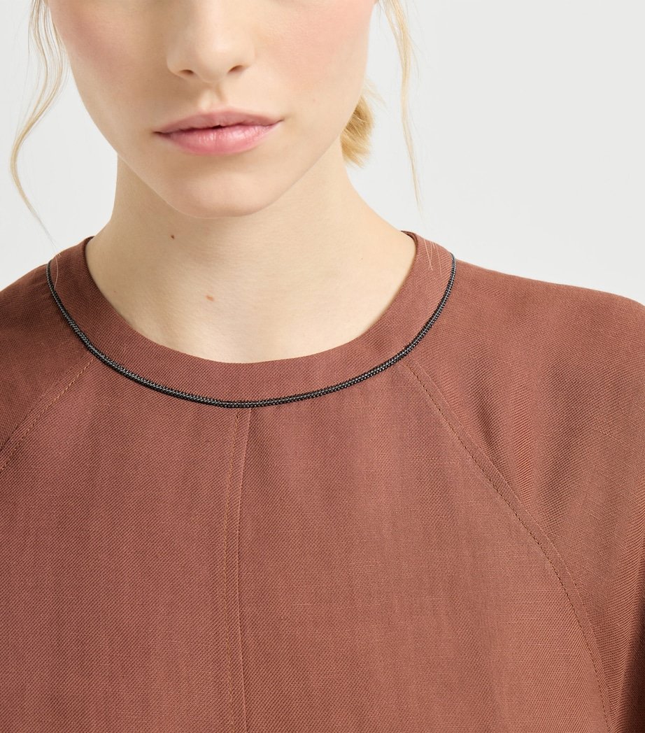 Clean-cut and versatile, this mini dress from Brunello Cucinelli is easy to style thanks to its minimalist, pared-back design. The monili detailing around the neckline provides the sole focal point, imbuing the sleek piece with a touch of sparkle and delivering the Italian House’s signature flourish.