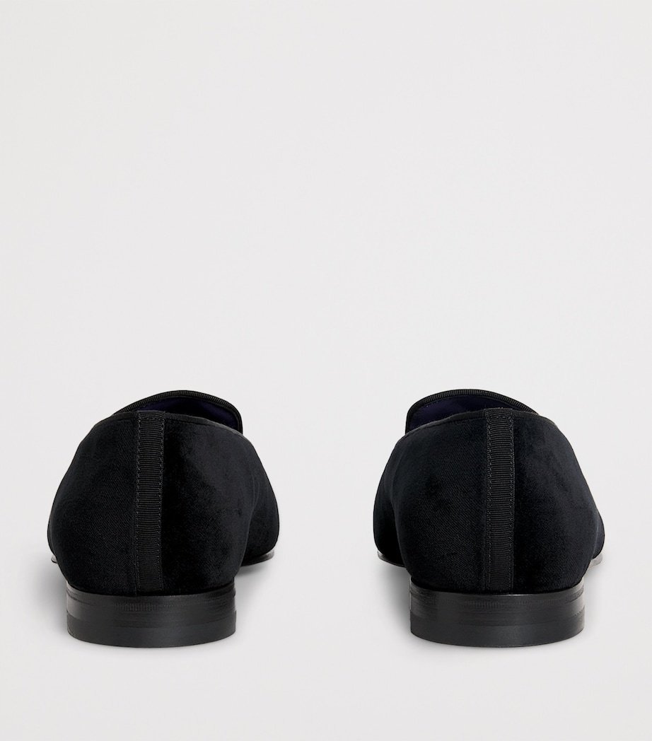Striking in its grandeur, Ralph Lauren Purple Label’s crest is a symbol of opulence and timelessly elegant style. Here, it can be found to the vamp of this rich velvet slipper, embodying the brand’s inspiration from the world of old glamour.
