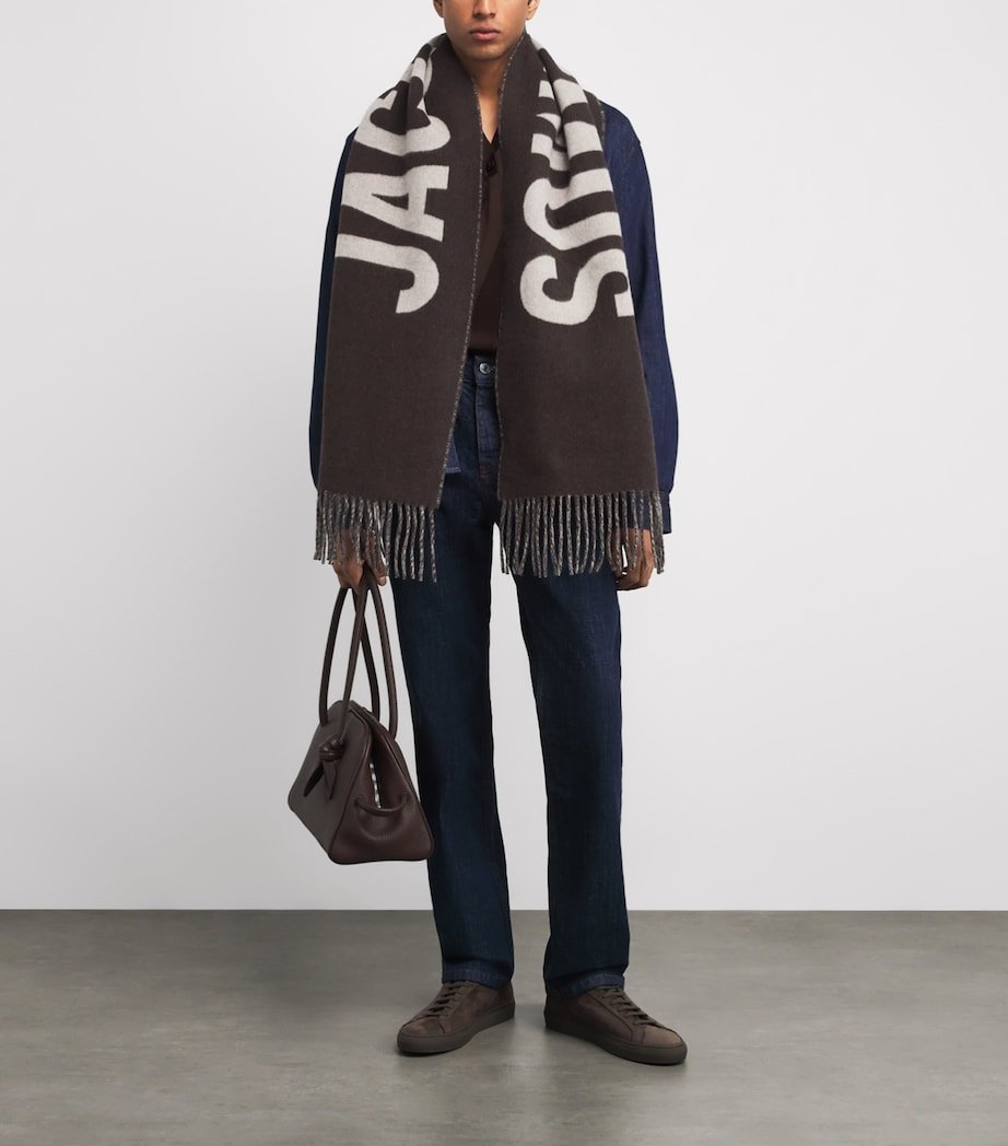 What’s in a name? Everything, it seems. Jacquemus spotlights its very own upon the surface of this virgin wool scarf, with the bold-type logo, woven into the fabric itself, running the entire length of the generously sized accessory. Envelop yourself in its warmth and flash a ‘Jacquemus’ letter or two in the process.