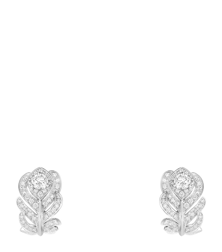 Revisiting a cornerstone motif at the heart of Boucheron’s heritage since 1866, the Plume de Paon collection expertly showcases the Maison’s jewellery savoir-faire, with each intricately laid stone resembling the ruffled feathers of a peacock. These clip-on earrings are crafted from 18-karat white gold and finished with a stunning formation of two round diamonds surrounded by a glistening array of miniature ones.