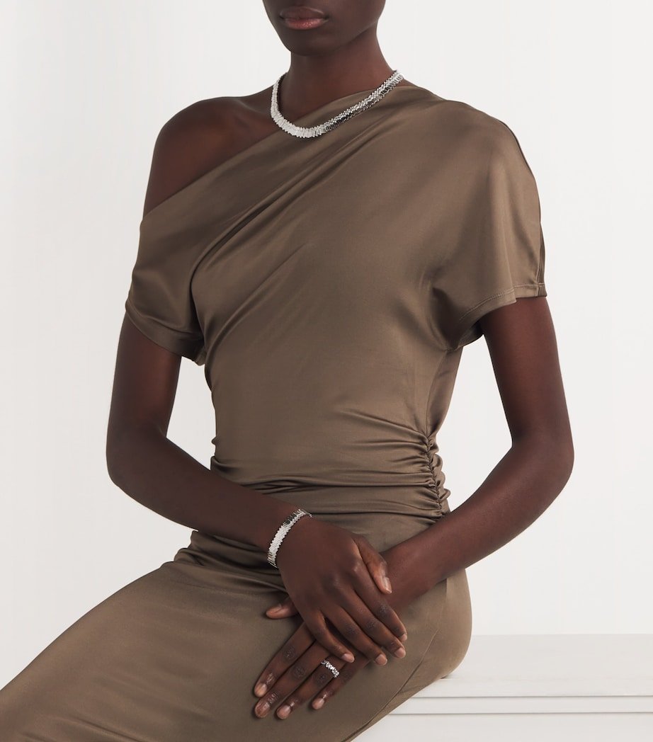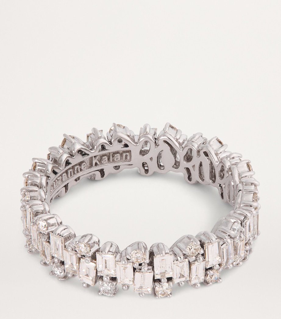 When a jeweller can be recognised by a single gemstone cut alone, you know they’ve hit the highest heights. One such name is Suzanne Kalan, whose use of baguette-cut stones – diamonds, in the case of this eternity ring – is further utilised in the Shimmer collection. The angular gems are interspersed with round diamonds, creating an unending band of light-catching wonder.