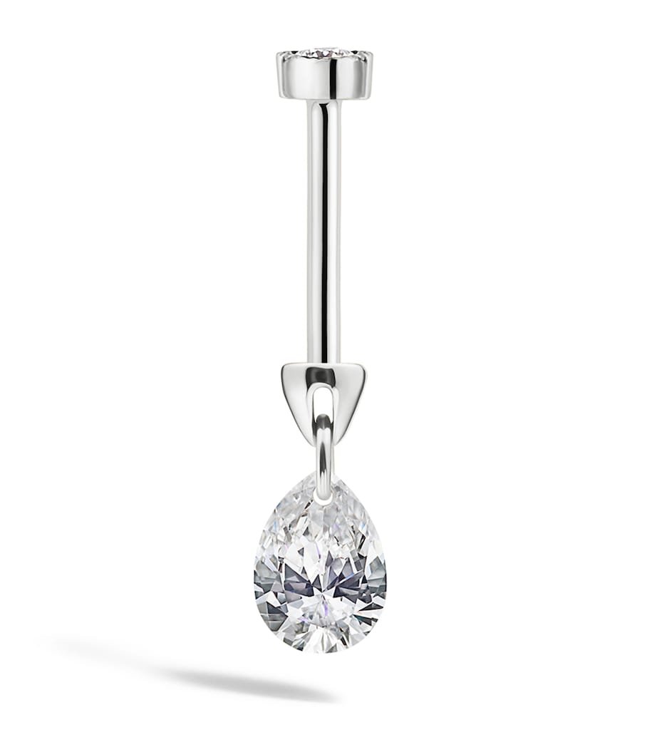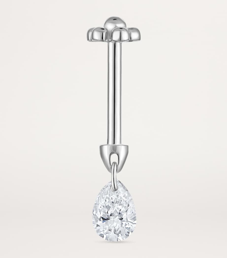 Piercings specialist MARIA TASH’s threaded studs are highly coveted for those seeking jewellery that’s a little less ordinary. Here, a single earring takes a minimalist direction, with an arrow-shaped barbell in gleaming white gold hosting a daintily dangling pear-shaped diamond that delivers the illusion of floating, while to the back, an additional diamond sits like a glimmering secret.For threaded studs, post sizing other than 6.5mm can be requested through Customer Service.